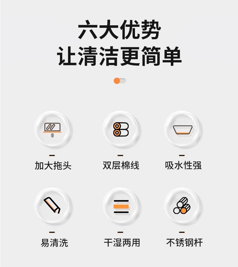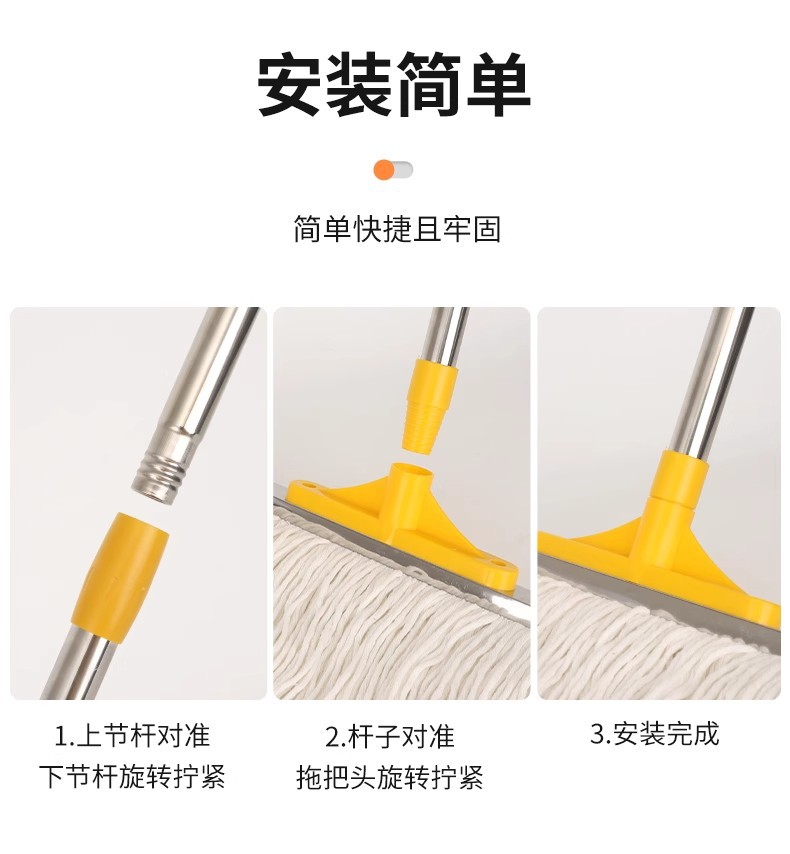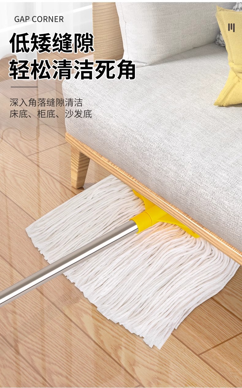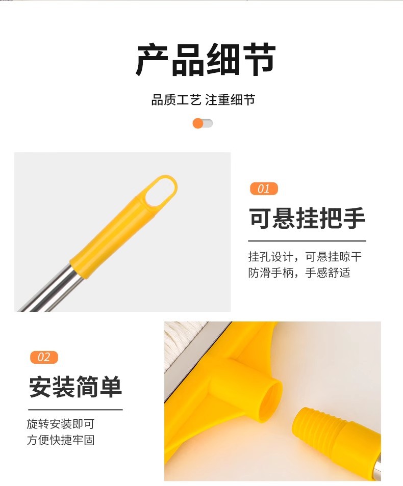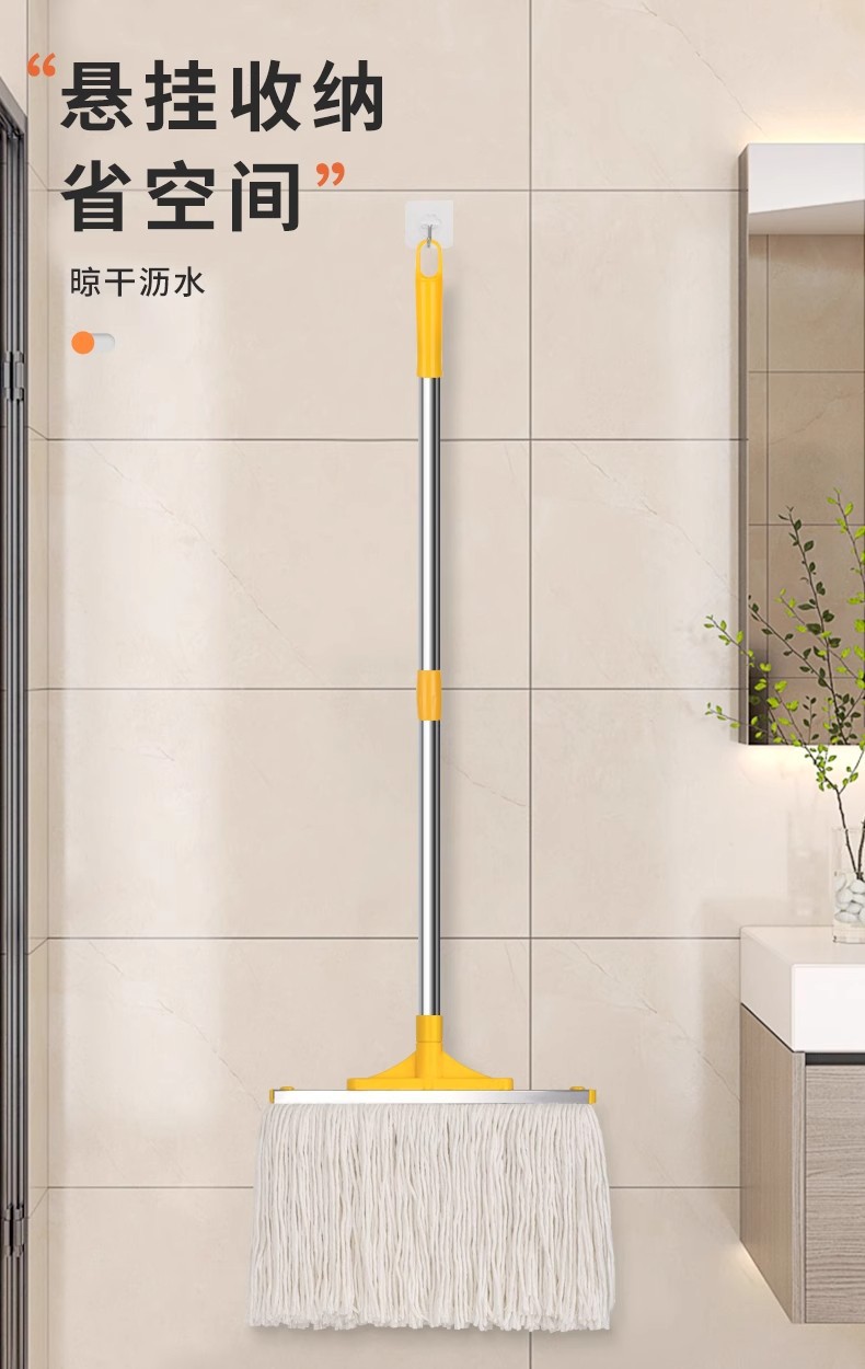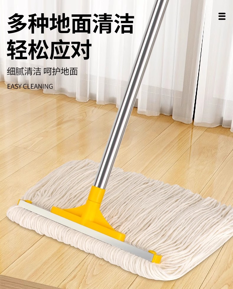 专供跨境商用棉纱拖可拆洗棉线墩布蜡拖把水拖配榨水车用立式地拖