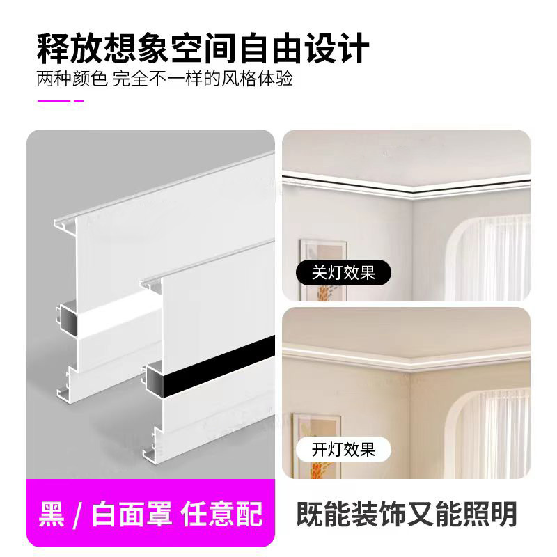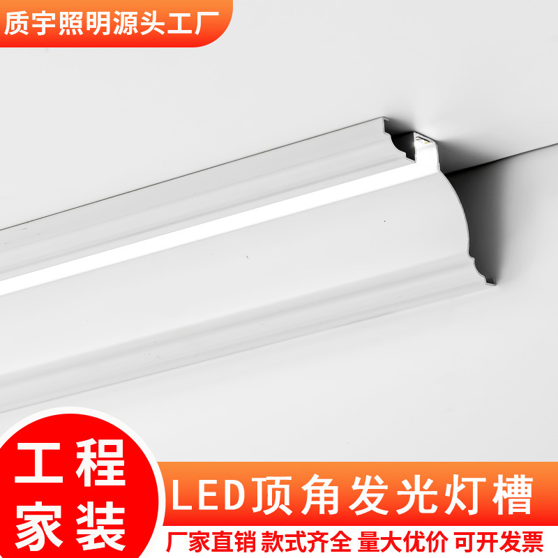 新中国式角花線型ランプ天井角全アルミニウム合金溝客間明装発光石膏線条形ランプ帯