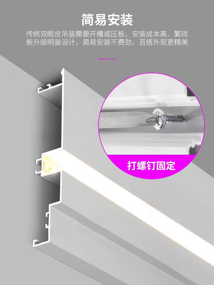 吊り下げなし客間石膏線型ランプ明装一体化二重まぶたアルミニウム合金頂角線性ランプ溝ledランプ