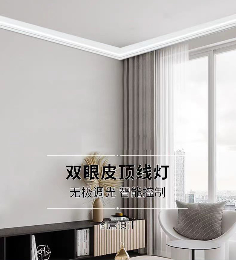 表面実装二重まぶたトップコーナーラインライトリビングルーム雰囲気フリーティールレスリニアライトスロットレスホームメインライトなしアンビエントライト