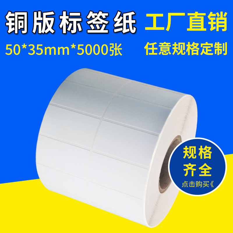 大量批发 现货不干胶 铜板标签纸50*35*5000 服装吊牌贴纸打印