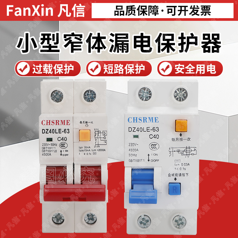 【正品】空气开关窄体漏保二位漏电保护器DZ40LE-63家用占位小2P