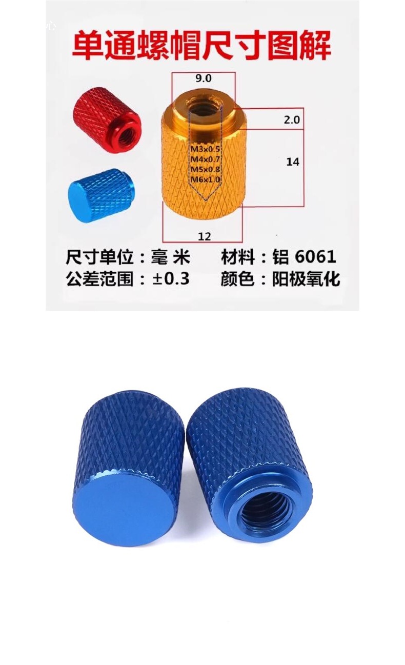カラーアルミニウム合金ハイステップ高さと長さハンドツイストシングルパスノンボアナットナットM4M5M6