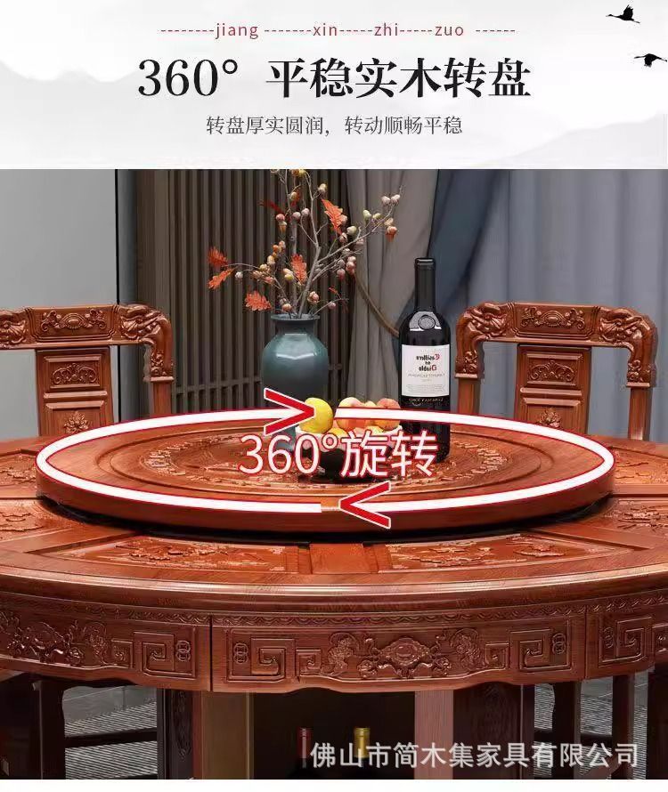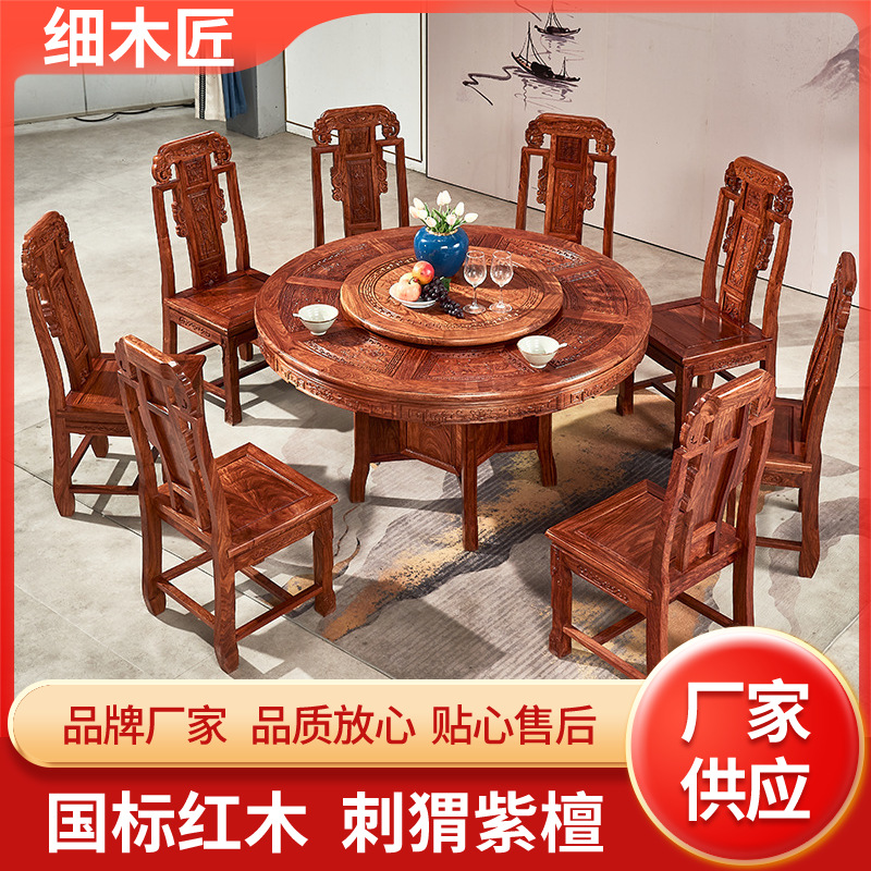 新中国式オーストラリア酸枝赤木全実木食卓と椅子の組み合わせ円卓と回転盤レストラン付き赤木彫刻家具