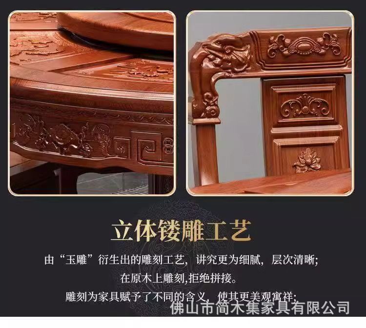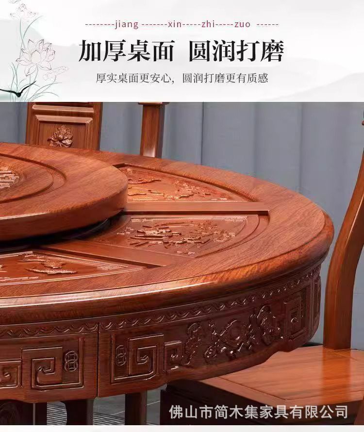 実木円卓新中国式金花梨木紅木円形食卓と椅子の組み合わせ回転盤食卓は古花家庭用テーブルに似せている
