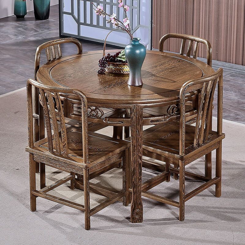 無垢材のダイニングテーブル中国風ラウンドフラワーアンティークラウンドテーブルターンテーブルオーククラシックホームダイニングテーブルと椅子の組み合わせ工場供給