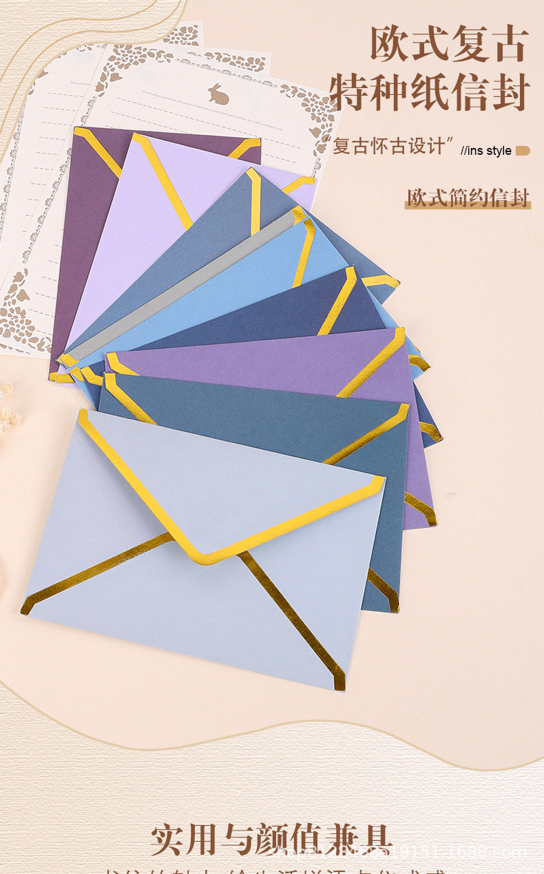 ヨーロッパ式現物カラー金辺箔押し封筒カラーカード招待状小封筒にロゴを付ける