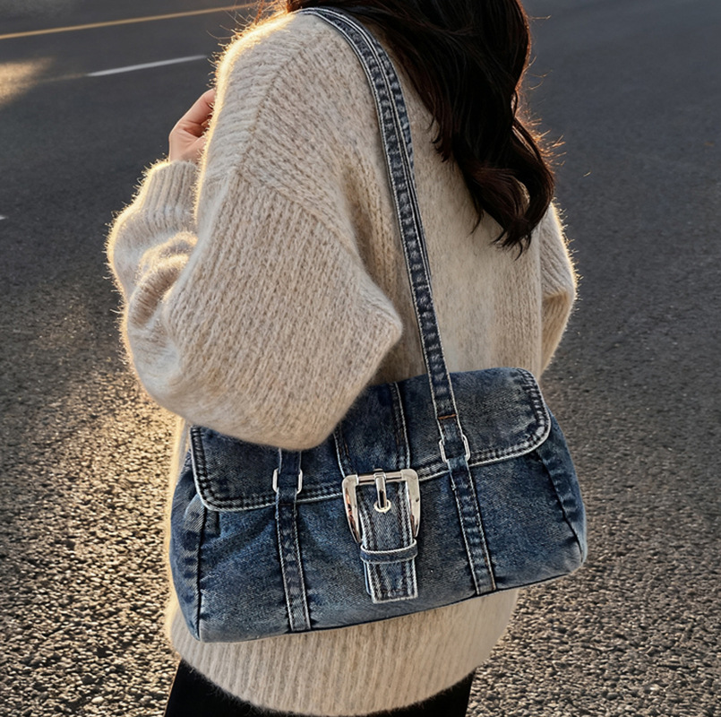跨境牛仔包包女2025新款时尚百搭单肩斜跨包大容量通勤手提托特包