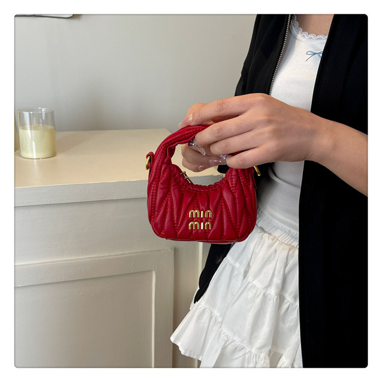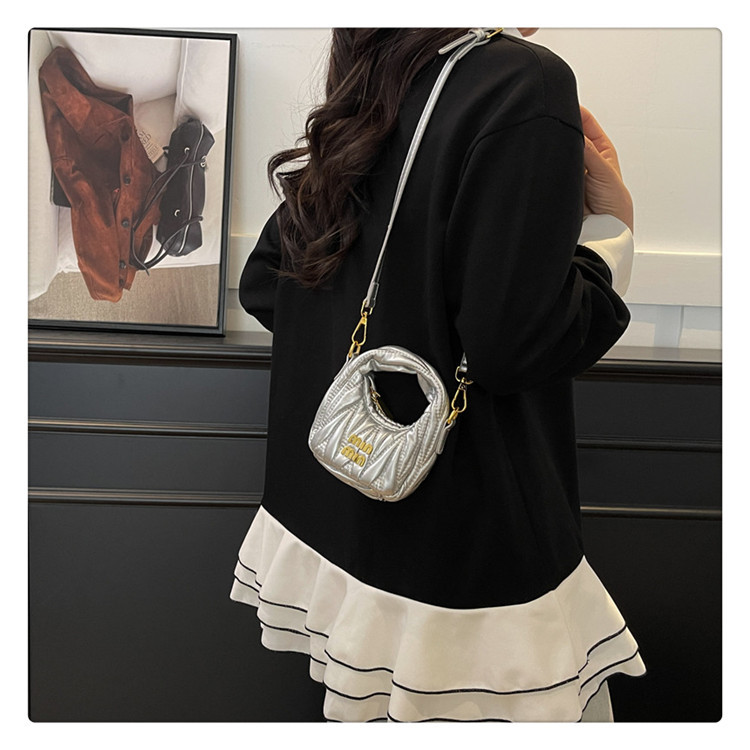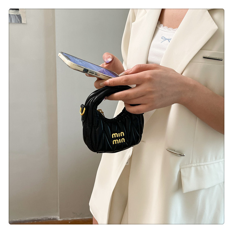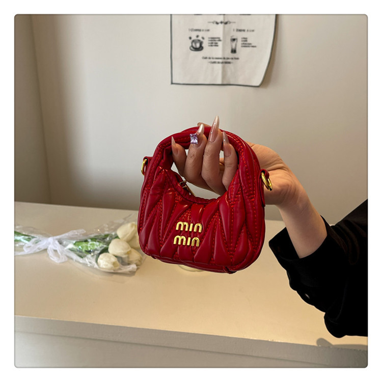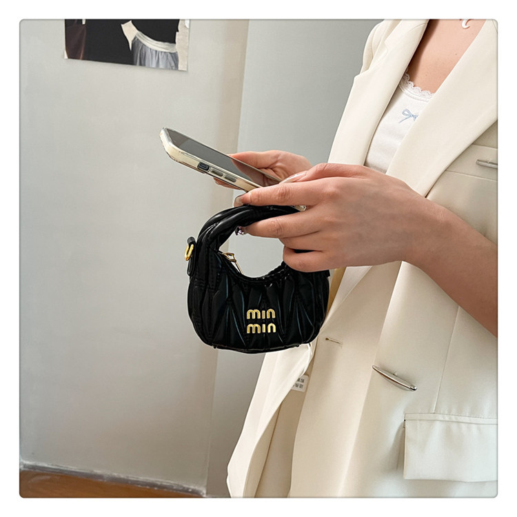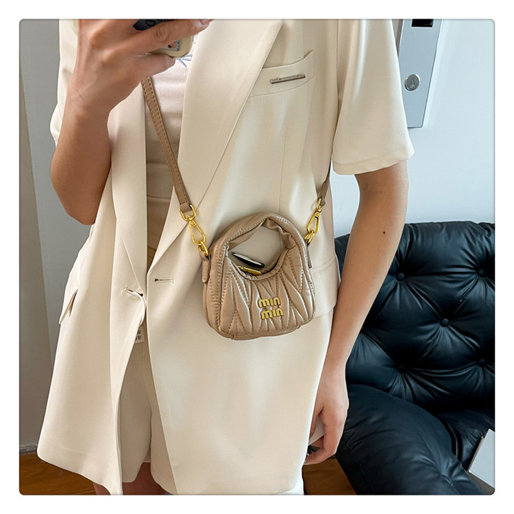 クロスボーダーレディースバッグ新しいヨーロッパとアメリカのトレンディなブランドレターミニ三日月バッグプリーツハイエンド超小型クロスボディバッグ口紅バッグ