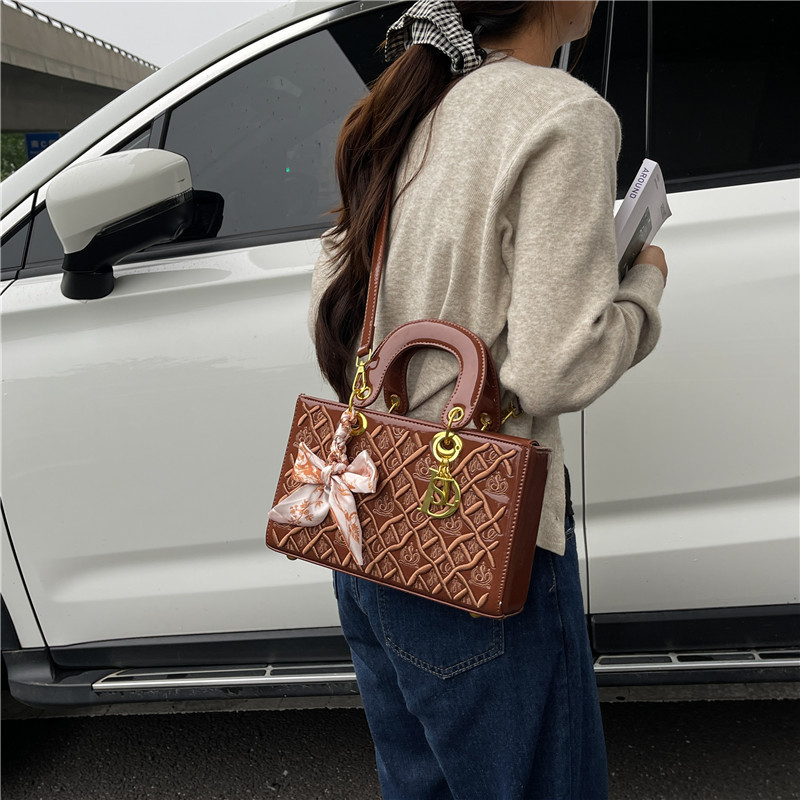 重工刺繍菱格戴妃包高級感斜めショルダーバッグ