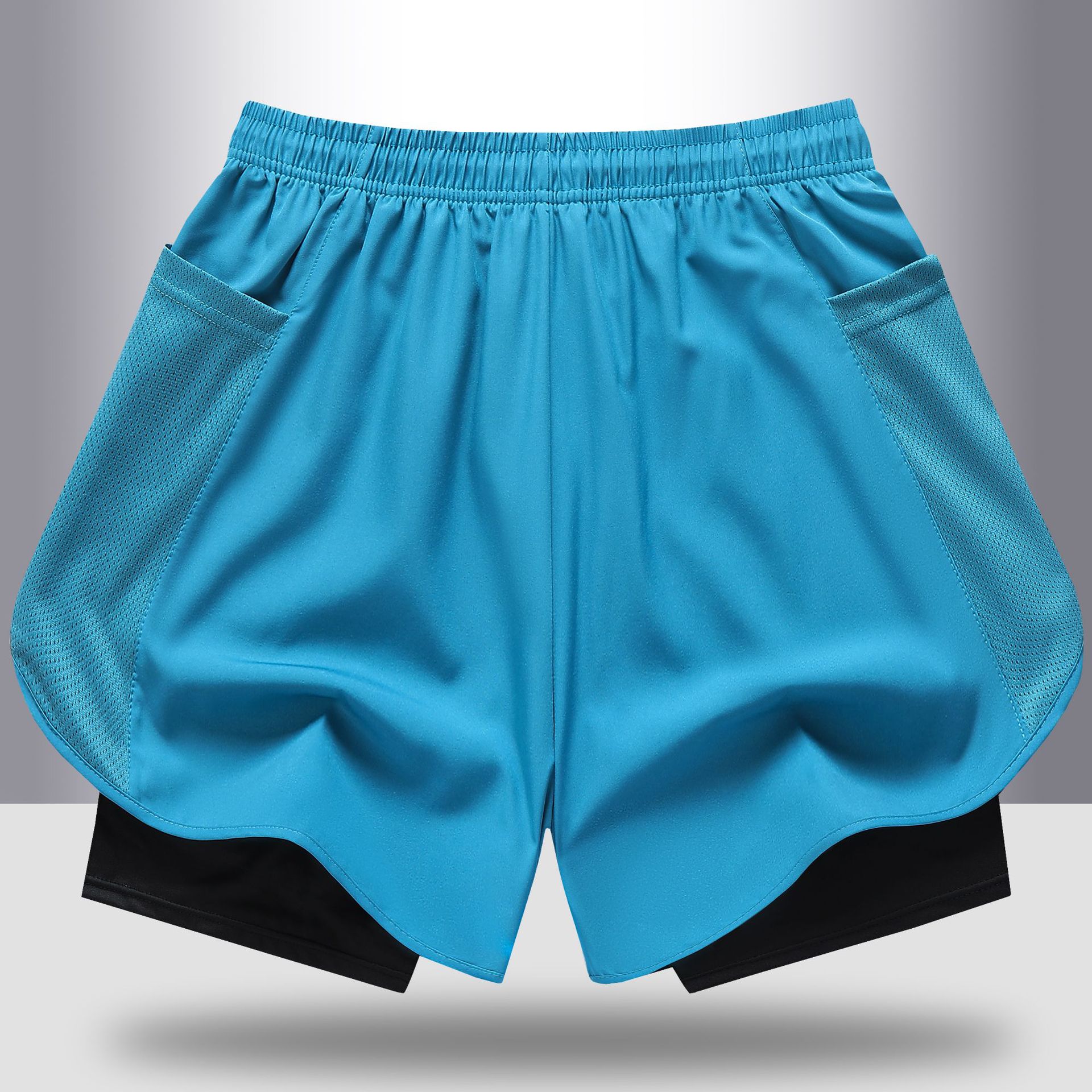 【越境欧码】夏用二枚組スポーツパンツ 男女兼用 速乾 アウトドア ランニングパンツ メンズ 通気性 シンプル カジュアル
