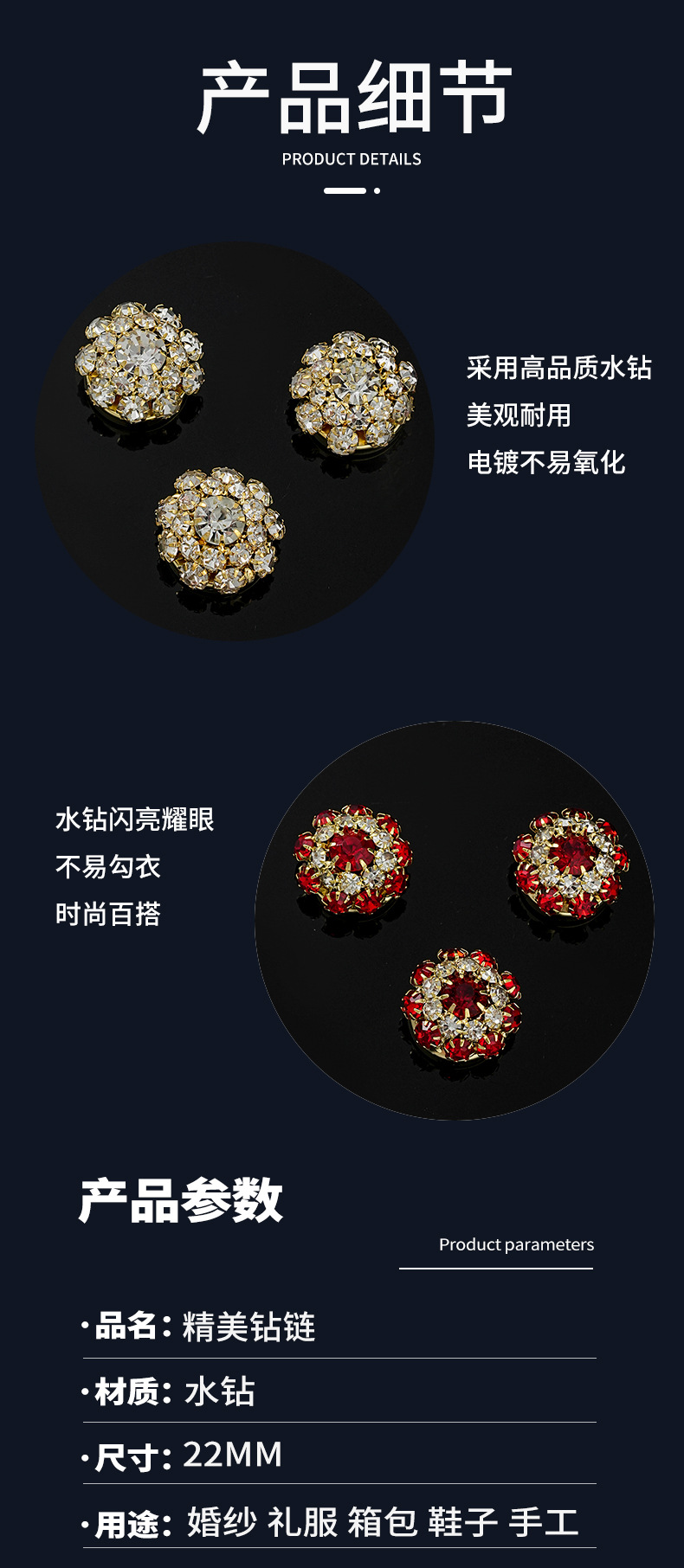 クロスボーダー熱売カラードリルシャツ装飾カフス取り外し可能なドリル装飾ボタン装飾ボタン装飾
