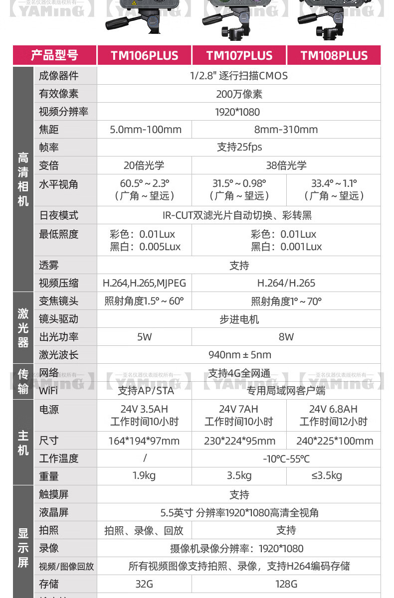 モデル TM106PLUS【昼夜ワイヤレス】,TM107PLUS【レーザー測距】,TM108PLUS【レーザー熱画像】
