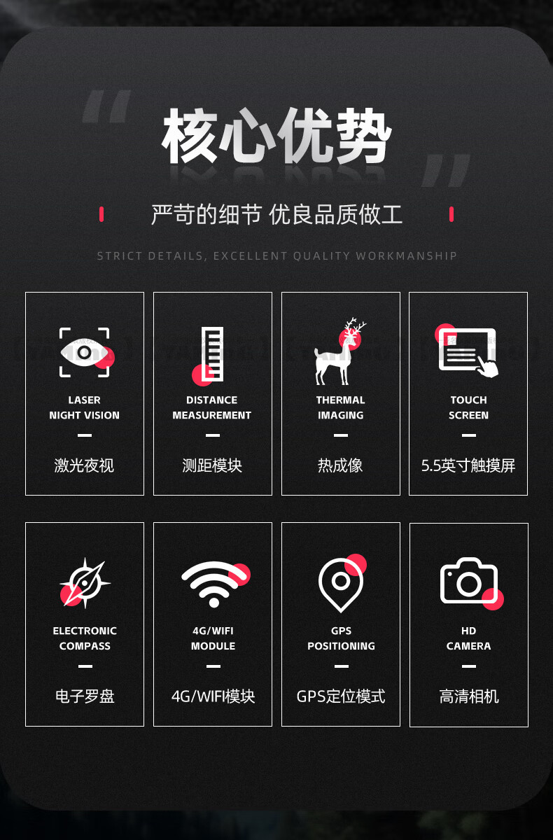 Bodelai TM106PLUS 昼夜ワイヤレス監視システム ナイトビジョン 熱画像測距 パトロール緊急望遠鏡