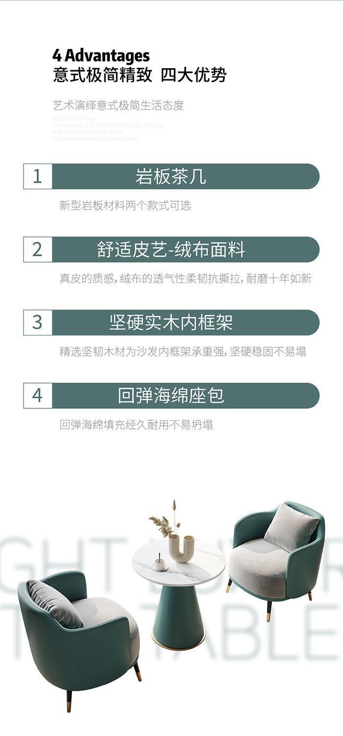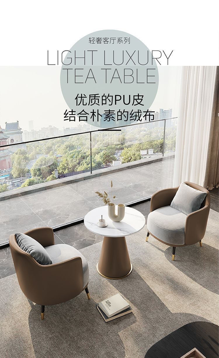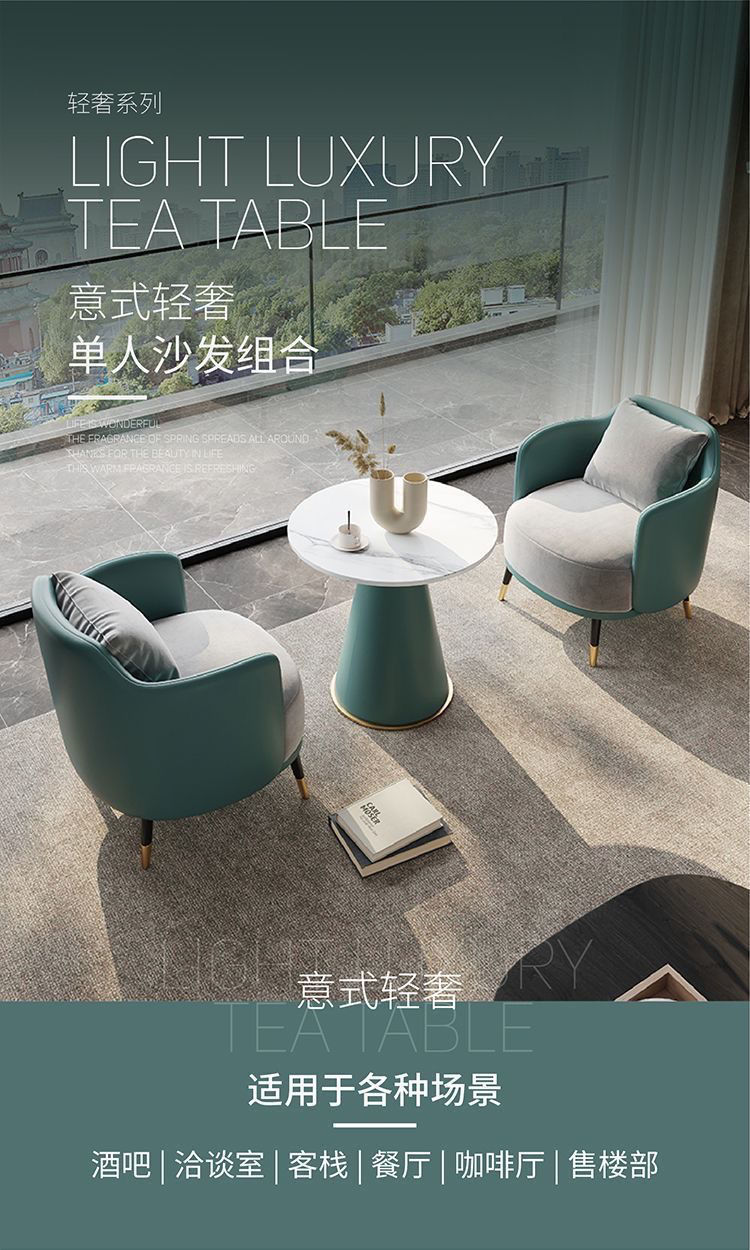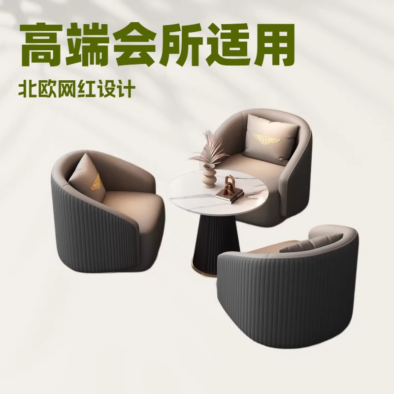 咖啡厅洽谈桌椅组合轻奢单人沙发茶几组合商用美容院接待休闲桌椅