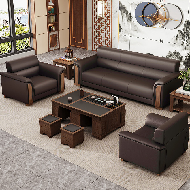 办公沙发茶几简约会客接待办公室沙发三人位真皮组合客厅小户型