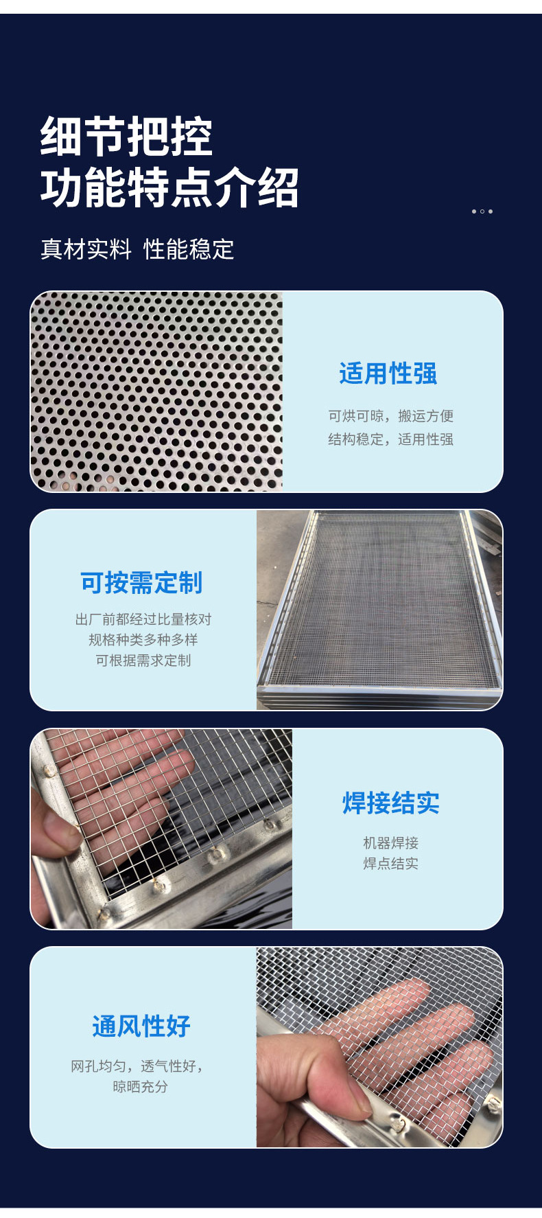 304 ステンレス鋼乾燥トレイ食品乾燥トレイクロスメッシュトレイ野菜と果物乾燥ローズスクエア乾燥トレイ