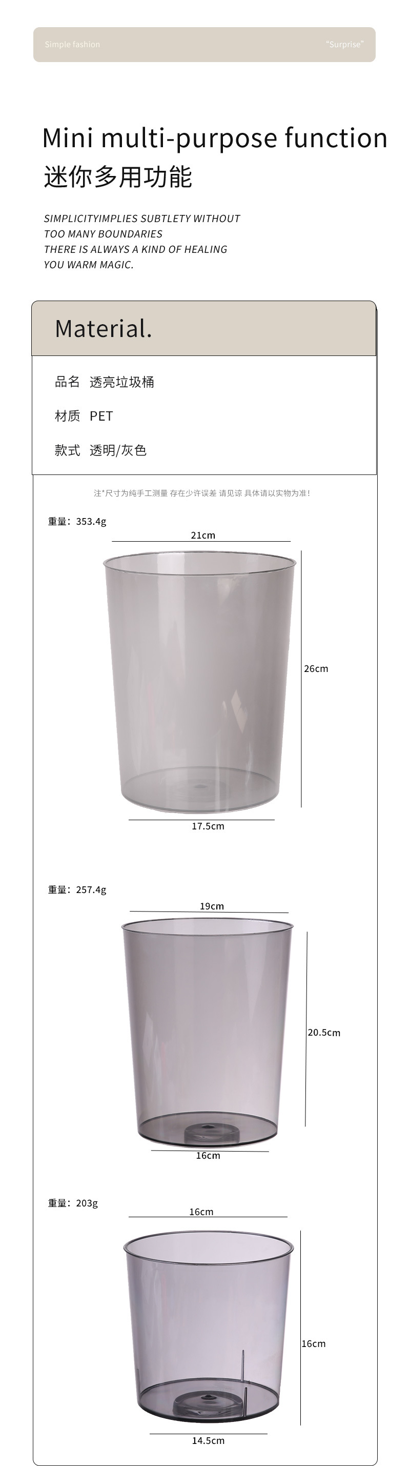 Petデスクトップゴミ箱リビングルーム家庭用透明トイレキッチン生け花大サイズオフィス寝室紙かご植木鉢