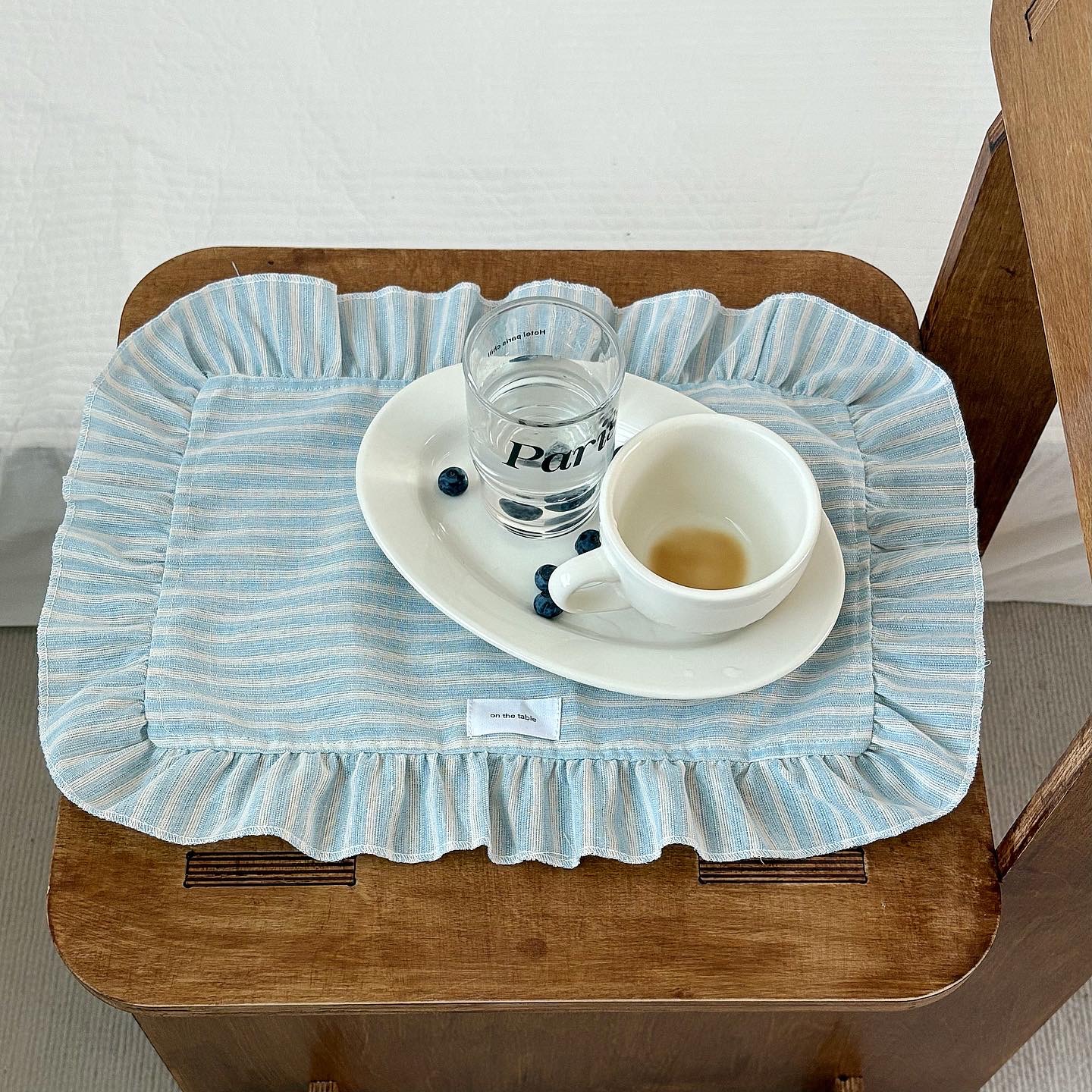 フレンチインスタイルスカイブルーストライプレースプレースマットフレッシュフリルナプキンデスクトップ装飾ダストカバー布
