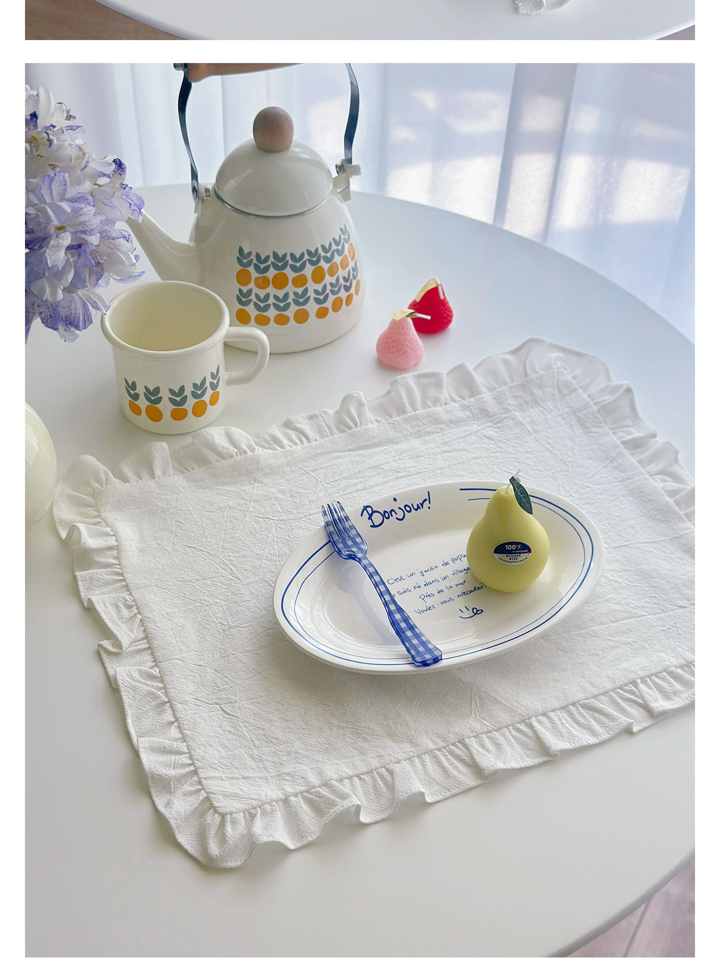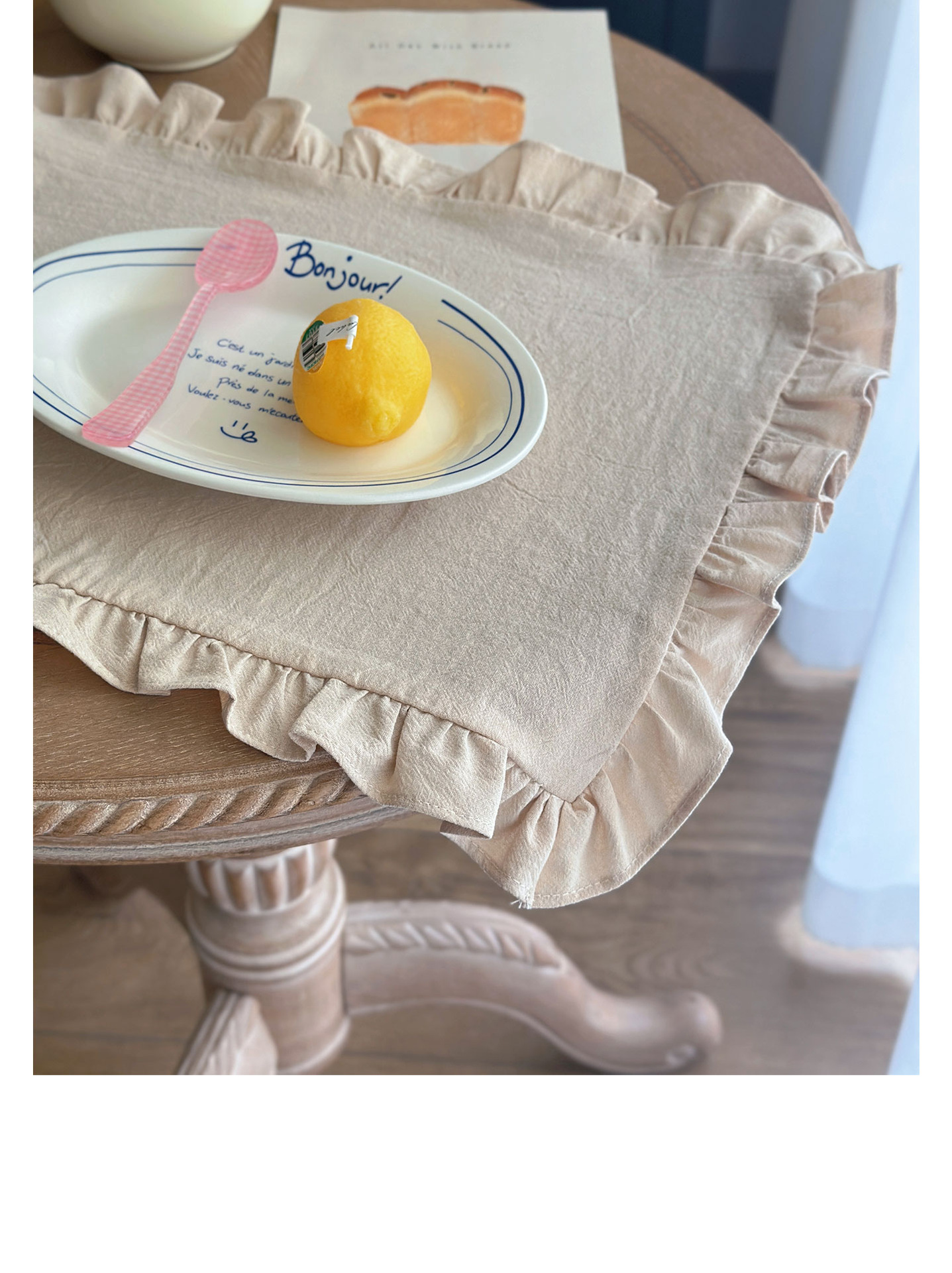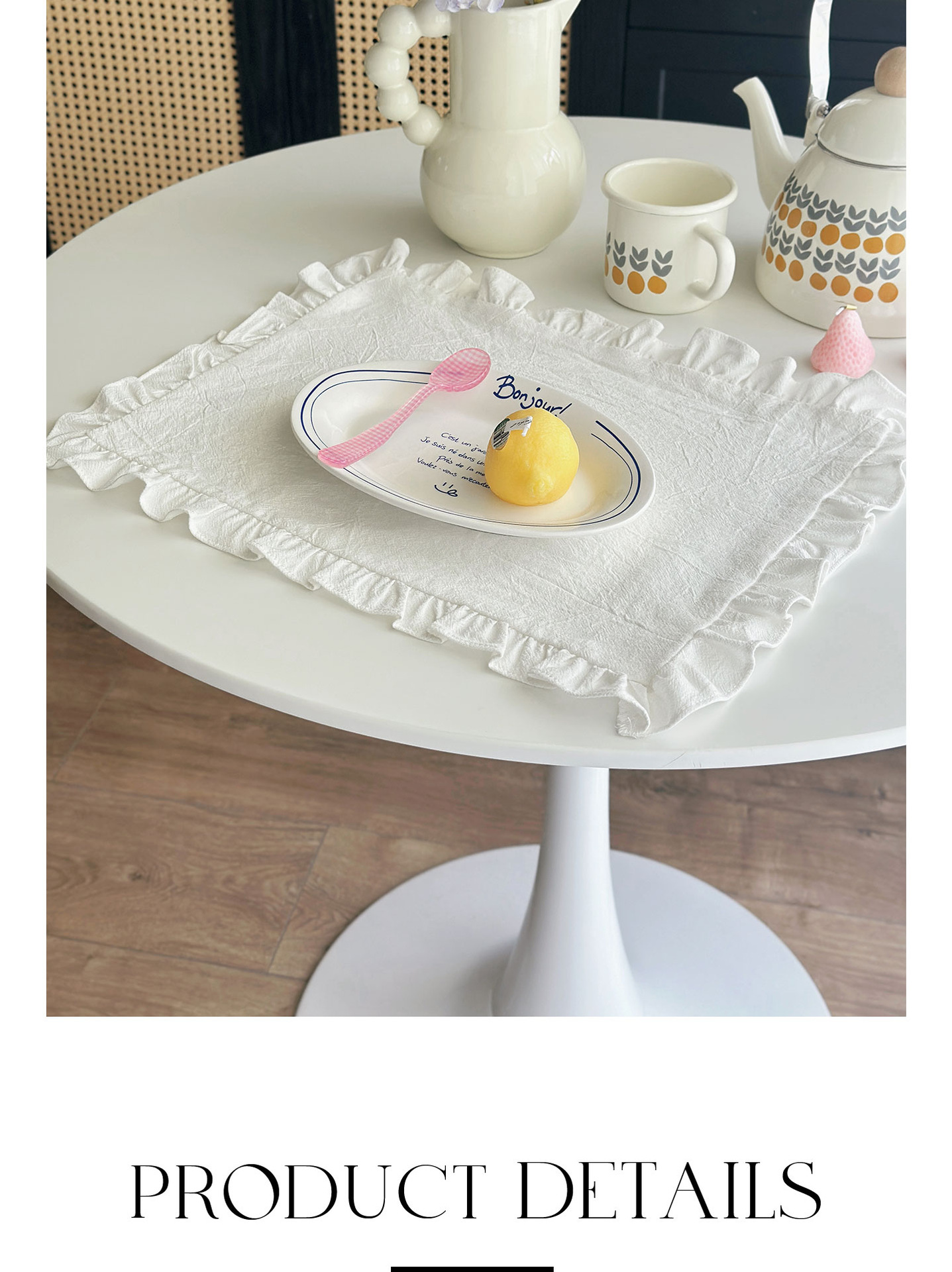 フレンチレトロプレースマットコットンとリネンインホワイトフリルダストカバーティーテーブルマットベーキンググルメ写真ナプキン