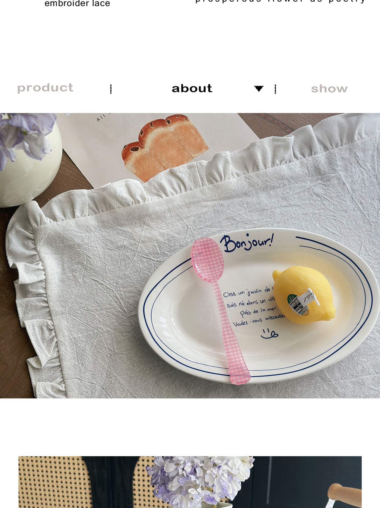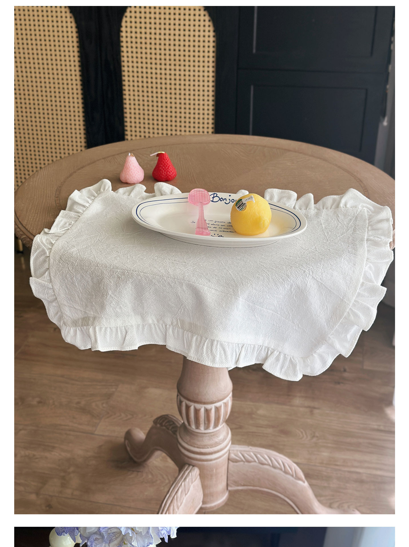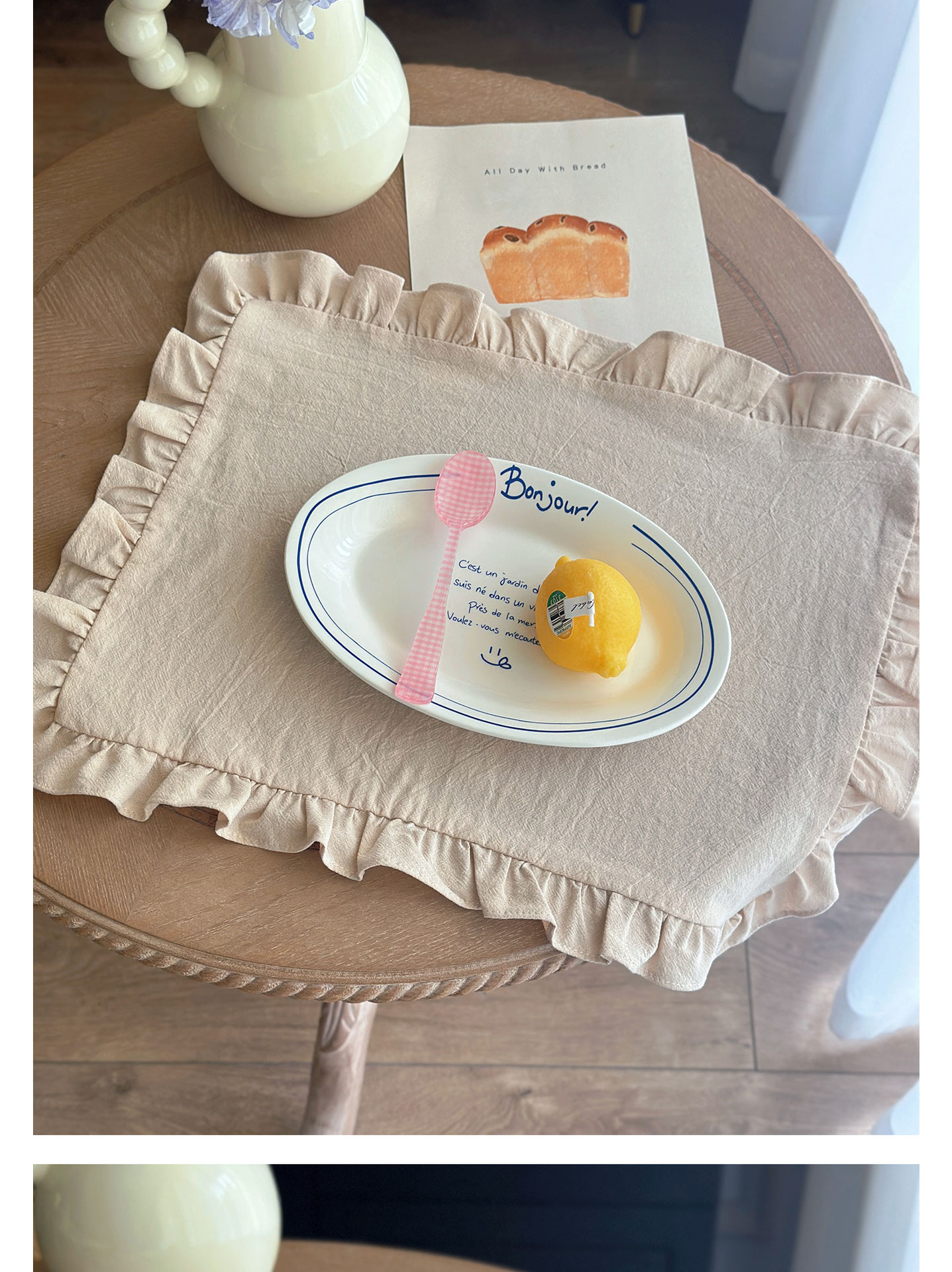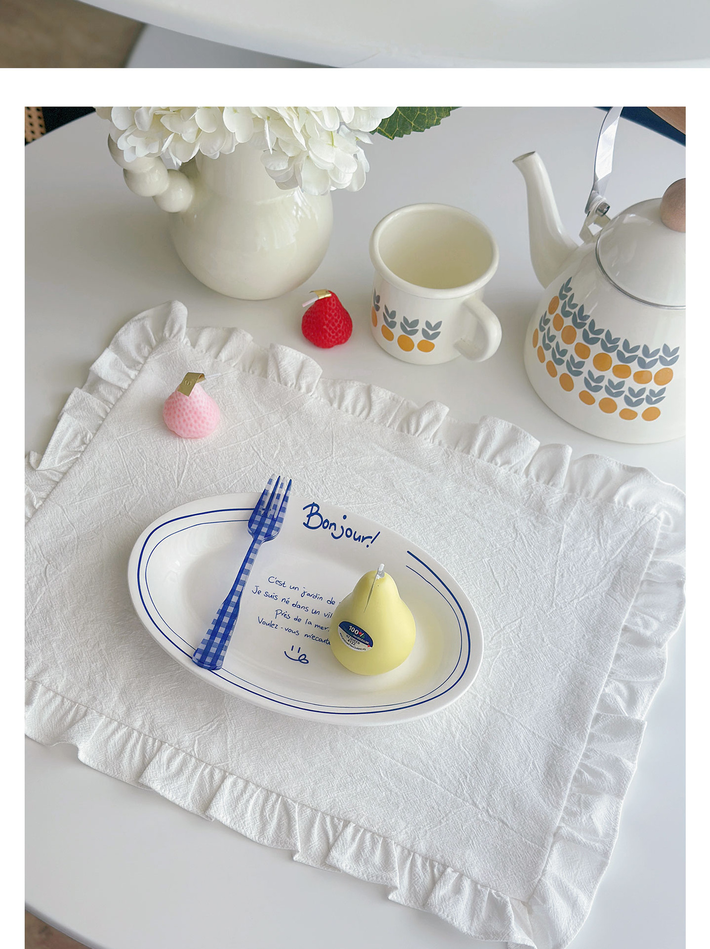 フレンチレトロプレースマットコットンとリネンインホワイトフリルダストカバーティーテーブルマットベーキンググルメ写真ナプキン