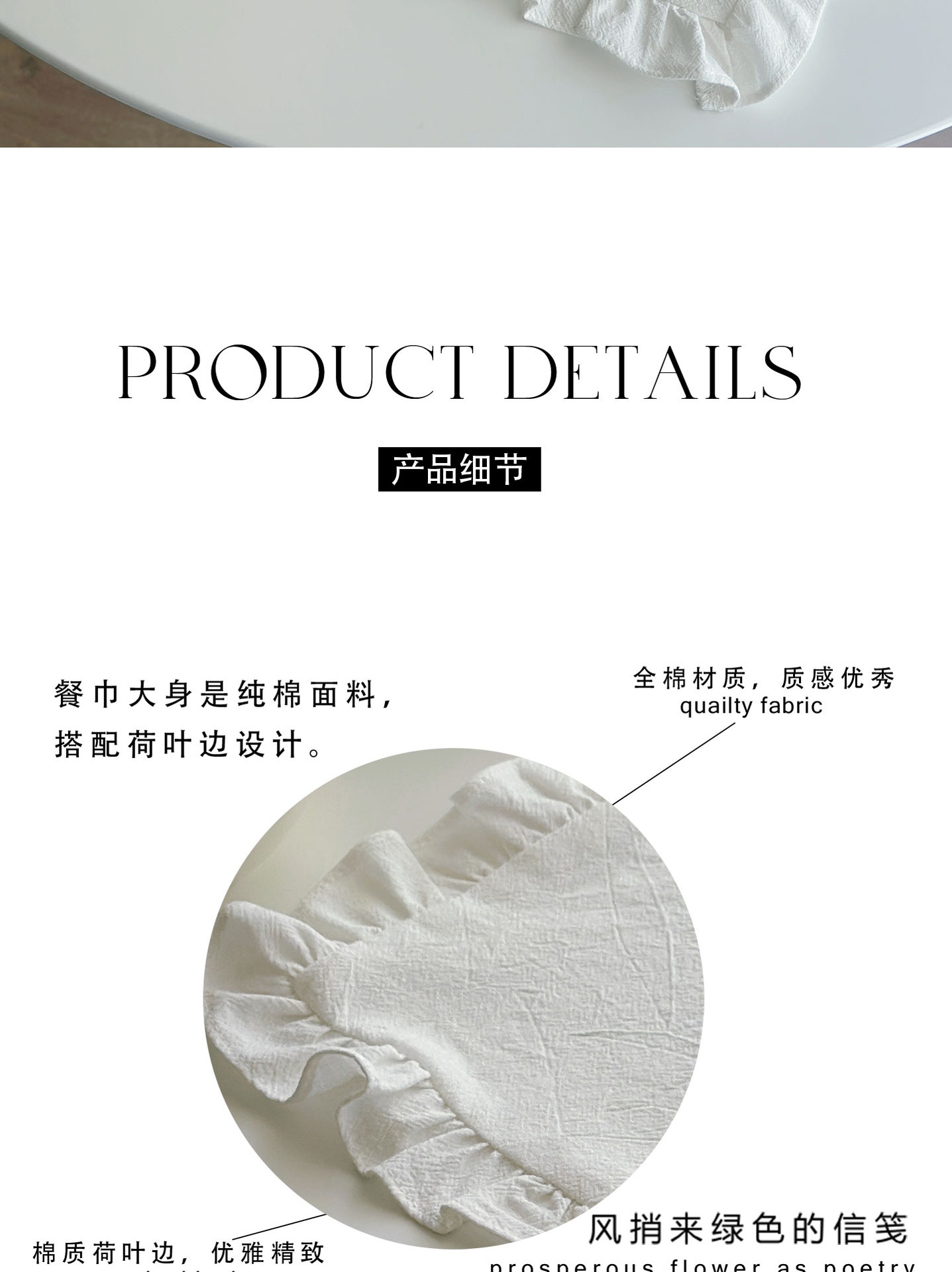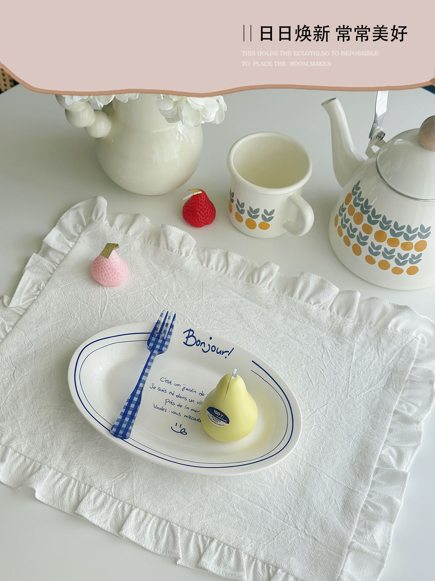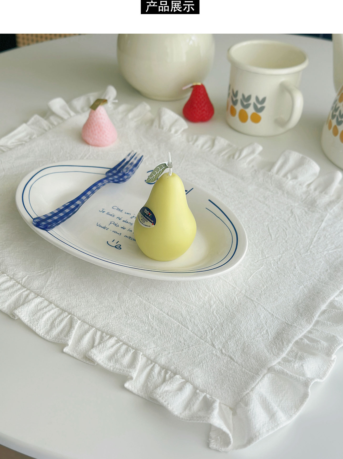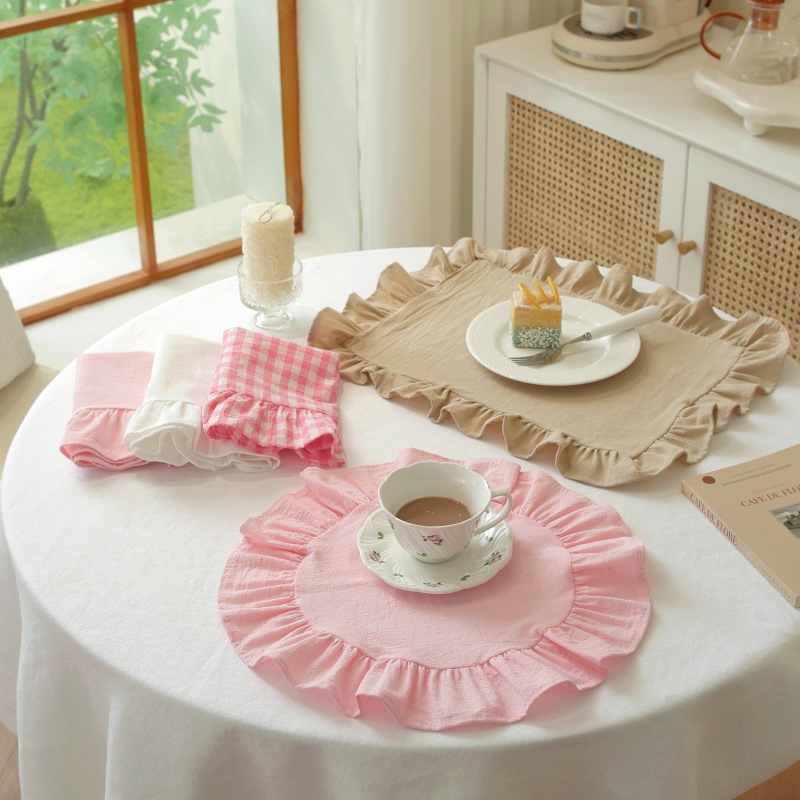 跨境法式棉餐巾布茶巾荷叶边简约纯色布艺西餐布餐垫隔热餐厅桌垫
