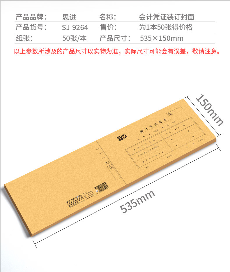 西玛会计凭证封面100套增票规格专用送包角办公用品牛皮纸通用