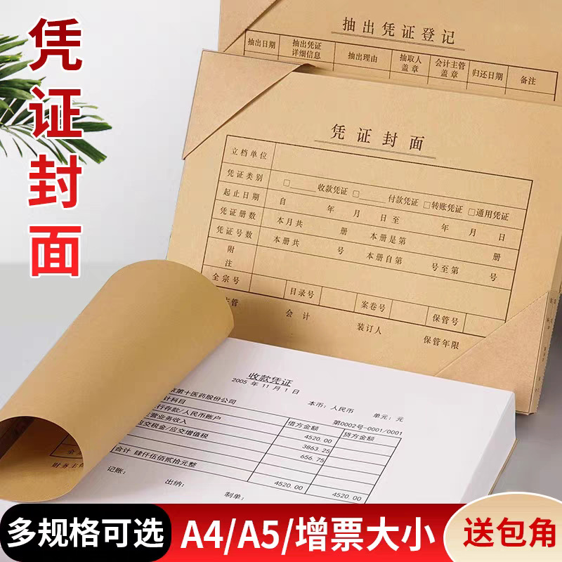 a5凭证封面A4一半A5会计凭证封皮通用牛皮纸凭证封面记账凭证封面