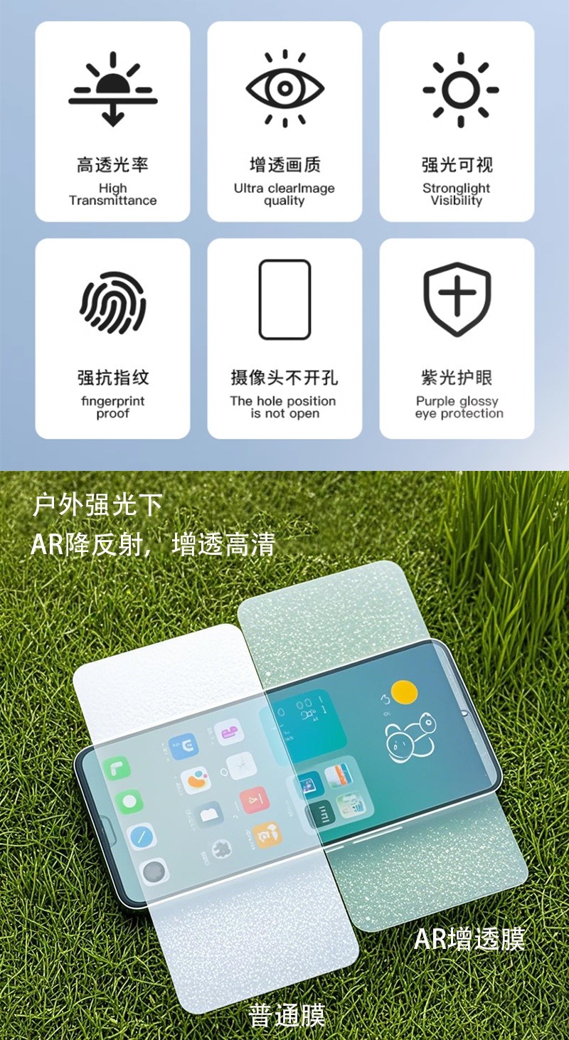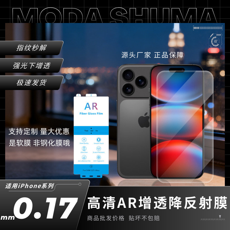 适用iPhone 17promax增透膜AR降反射膜苹果15/17 Air/16pro菲林膜