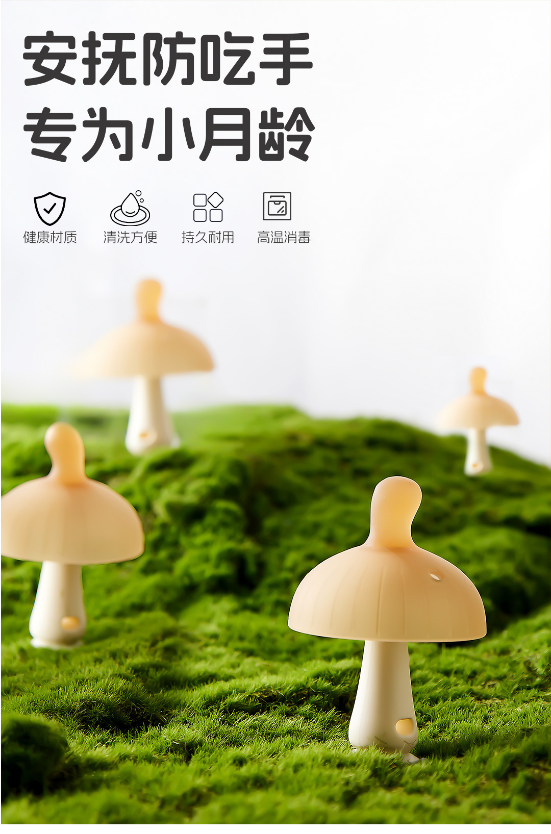 牙胶婴幼儿磨牙棒小蘑菇防吃手小月龄安抚宝宝手指咬胶食品级硅胶