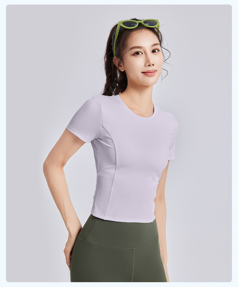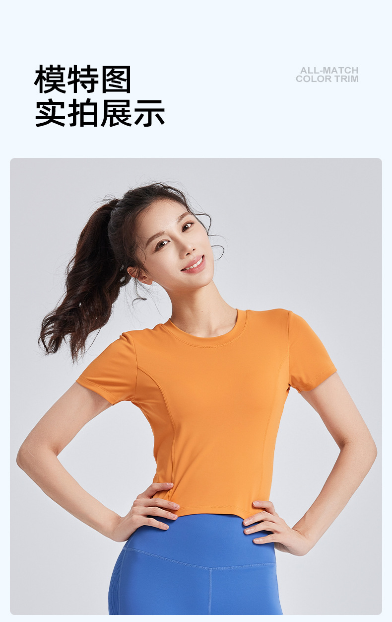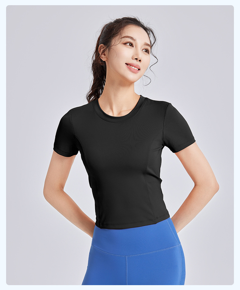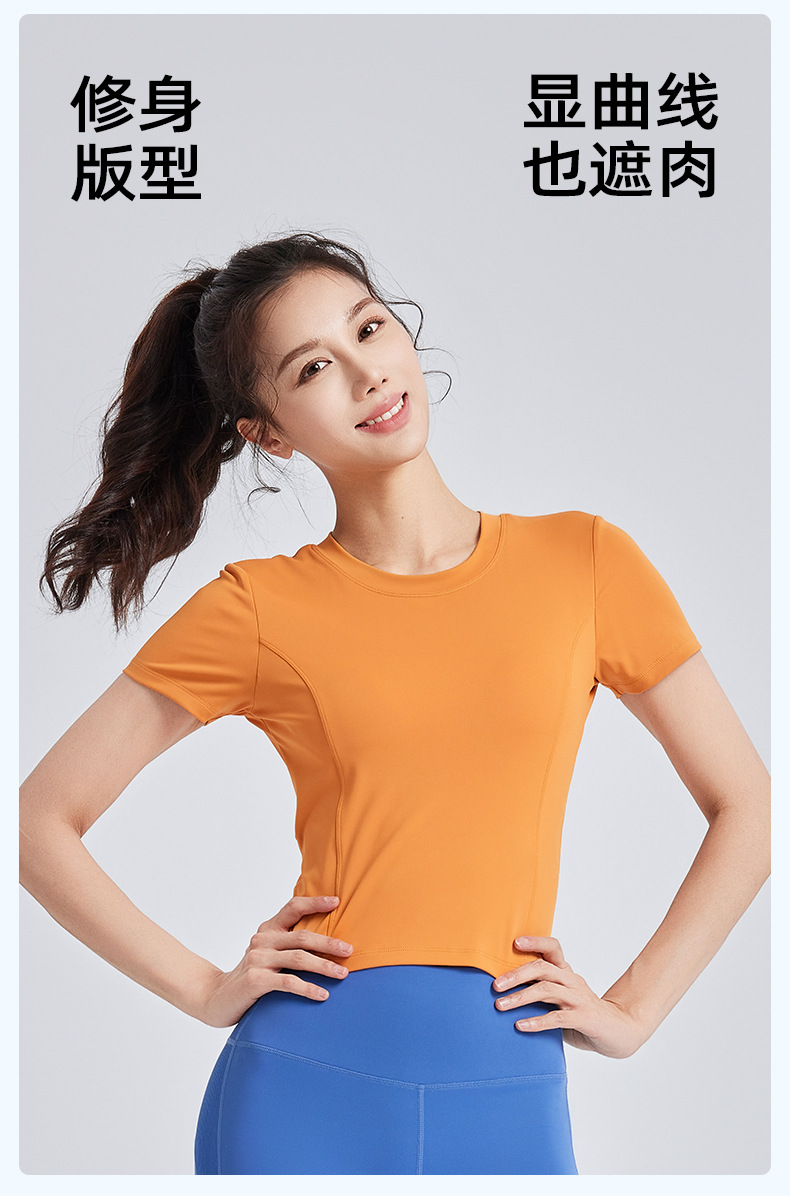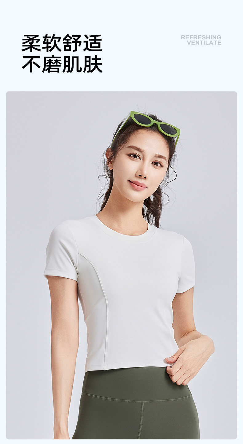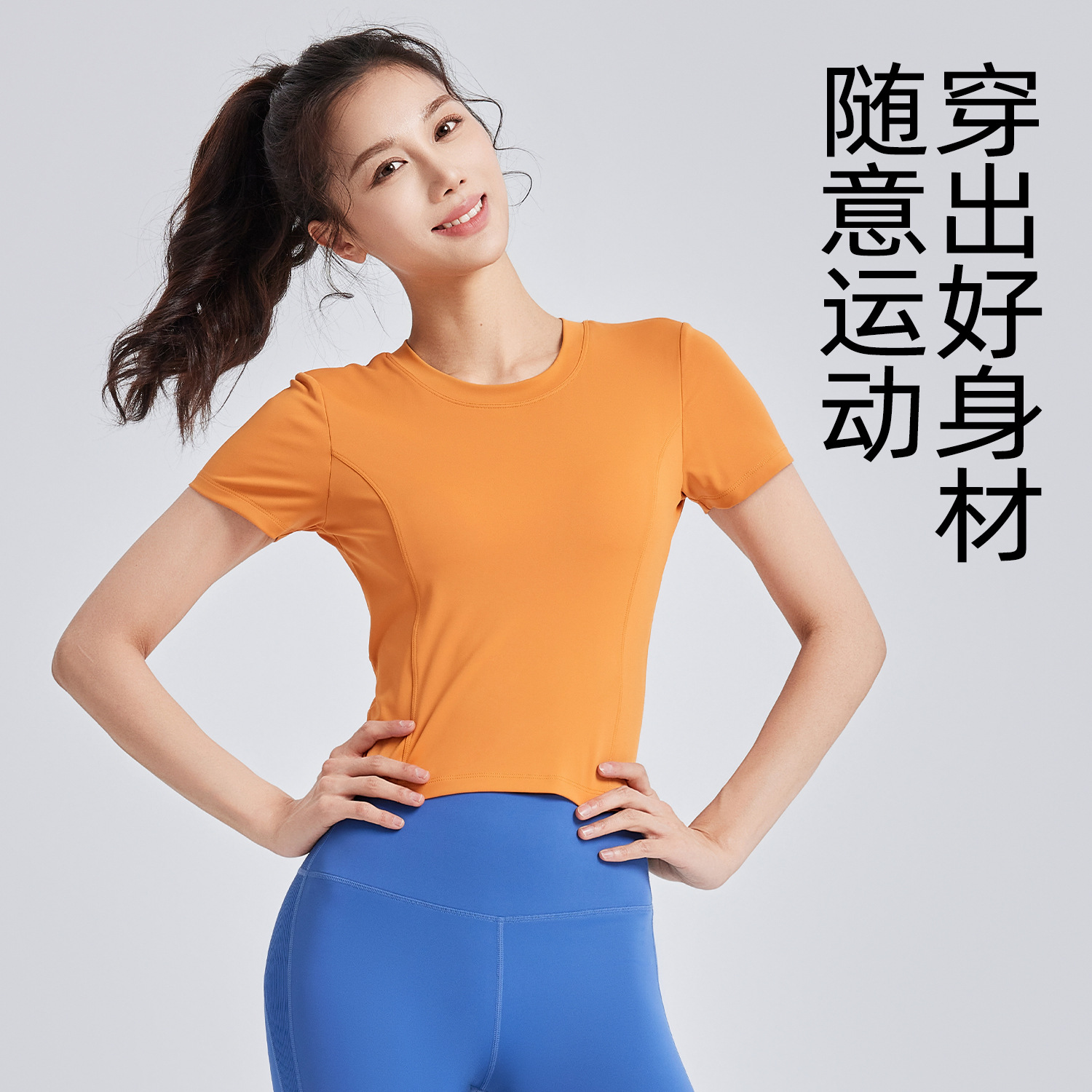 瑜伽服短袖女带胸垫免穿内衣运动t恤透气短款修身普拉提健身上衣