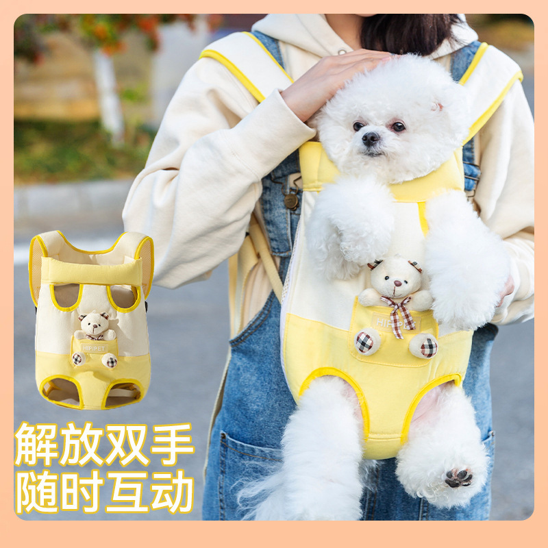 ✅漫画かわいいクマ犬胸バッグ猫バッグ外出用携帯バッグ犬リュックサック春夏小型犬ペット用