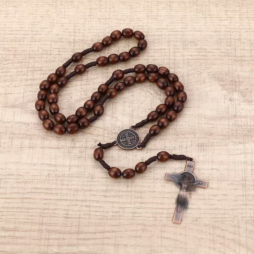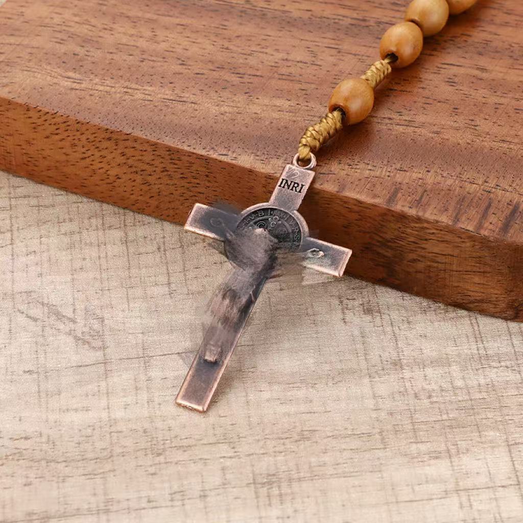 Etsy跨境热销天然木珠十字架祈福饰品纯手工编制批发