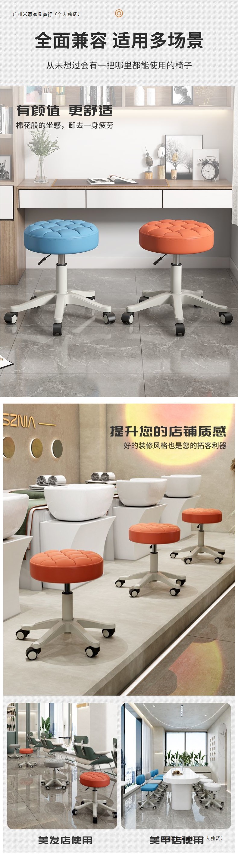 美容室専用美容スツール昇降滑車美容師理髪店大型作業椅子家庭用背もたれ椅子