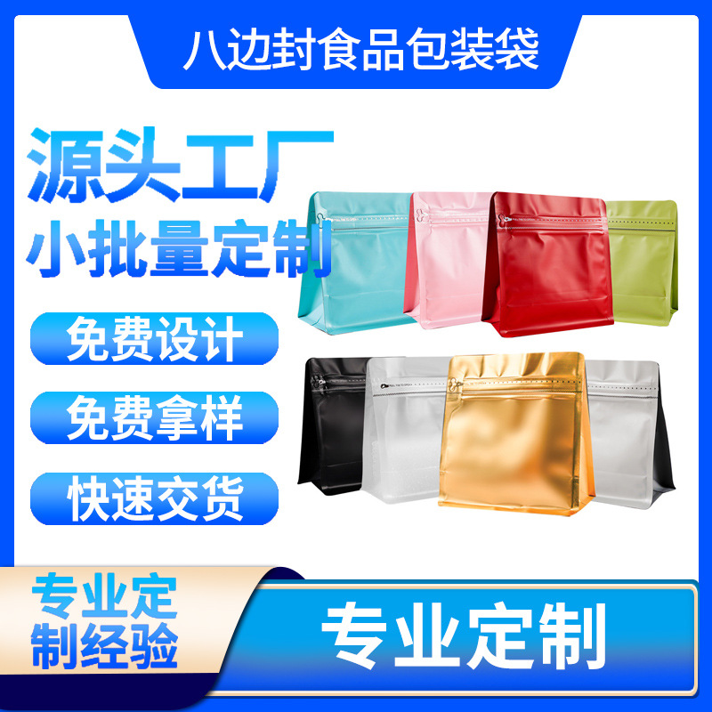 ソースファクトリーカスタマイズされた8面シールクラフト紙包装袋自立セルフシール食品コーヒー包装クラフト紙袋