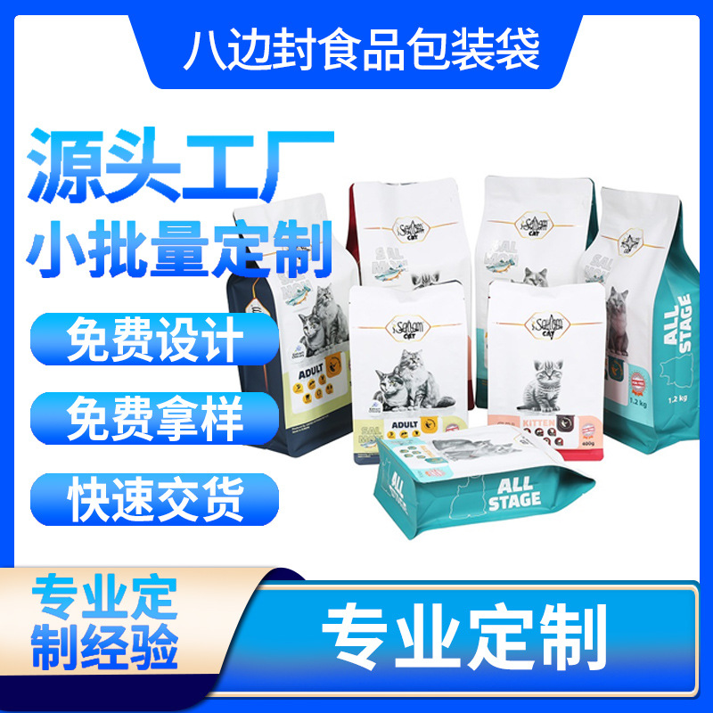 キャットフード包装袋アルミ箔密封された 8 面シール袋カスタムドッグフードグラビア印刷食品包装袋