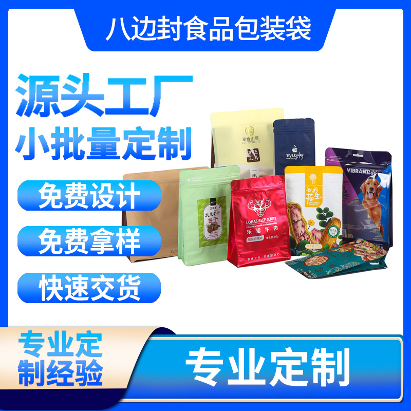 ソースファクトリー複合八面シールキャットフードとドッグフードバッグ自立型セルフシール真空アルミホイルペットスナック包装袋