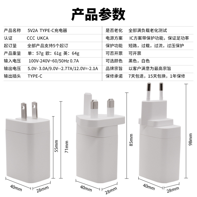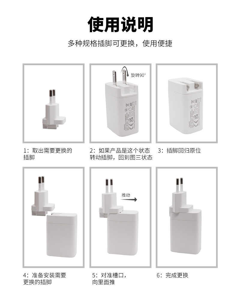 PD20W手机充电器CE认证可换头英规适用OPPO安卓华为手机充电头
