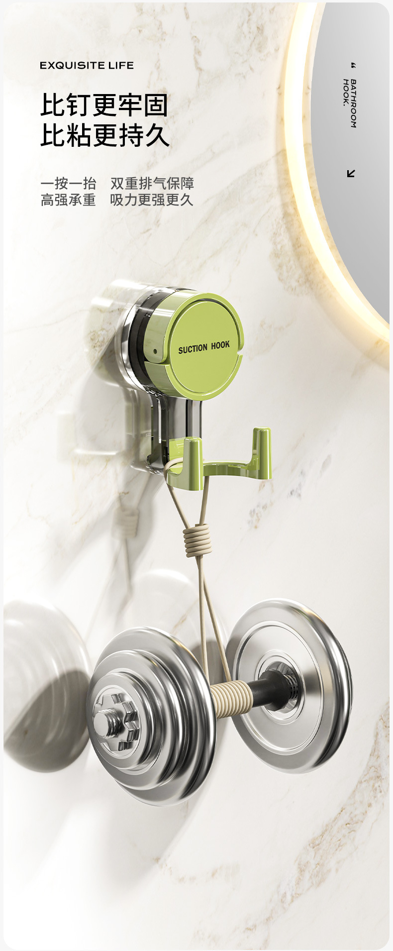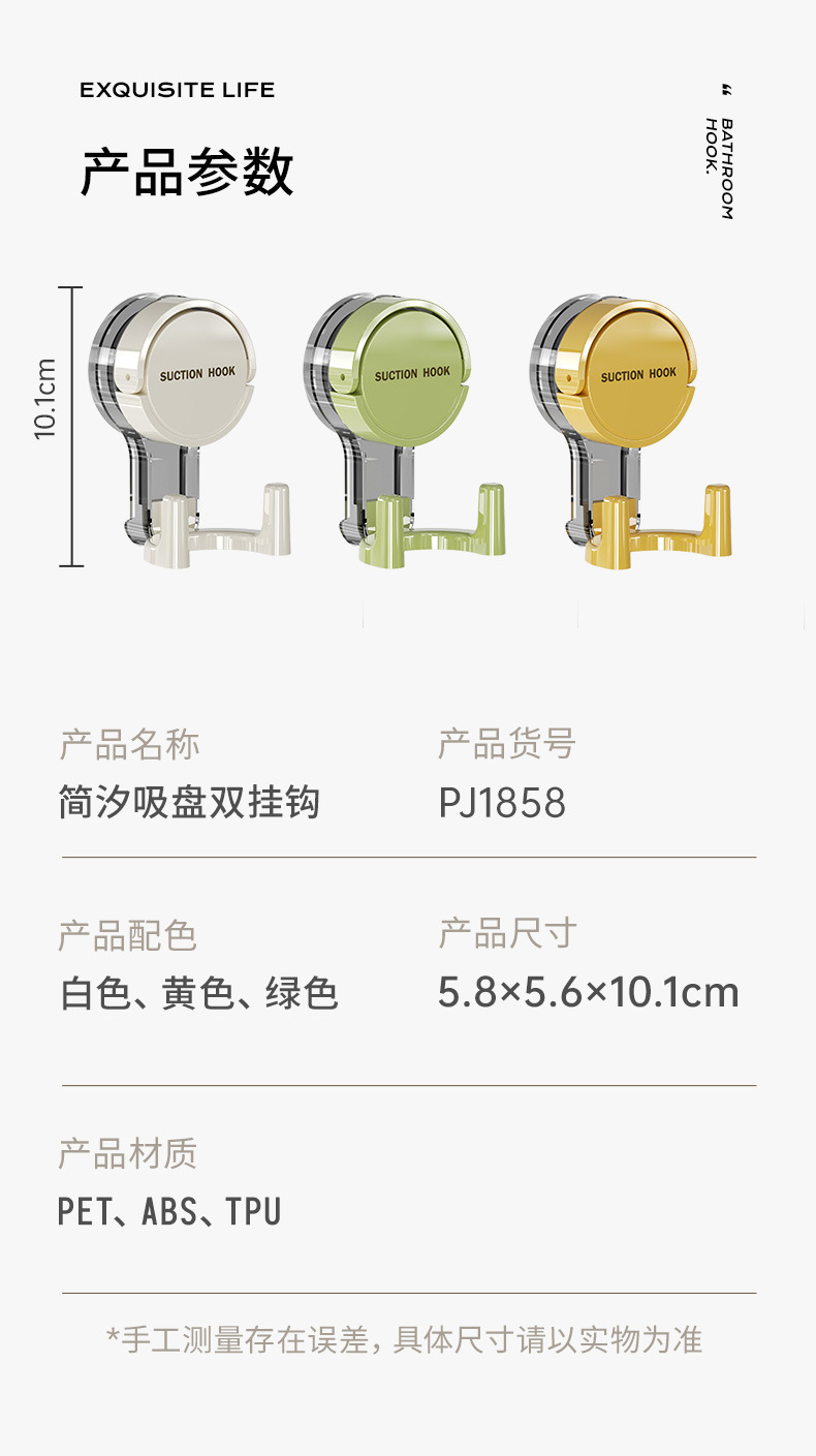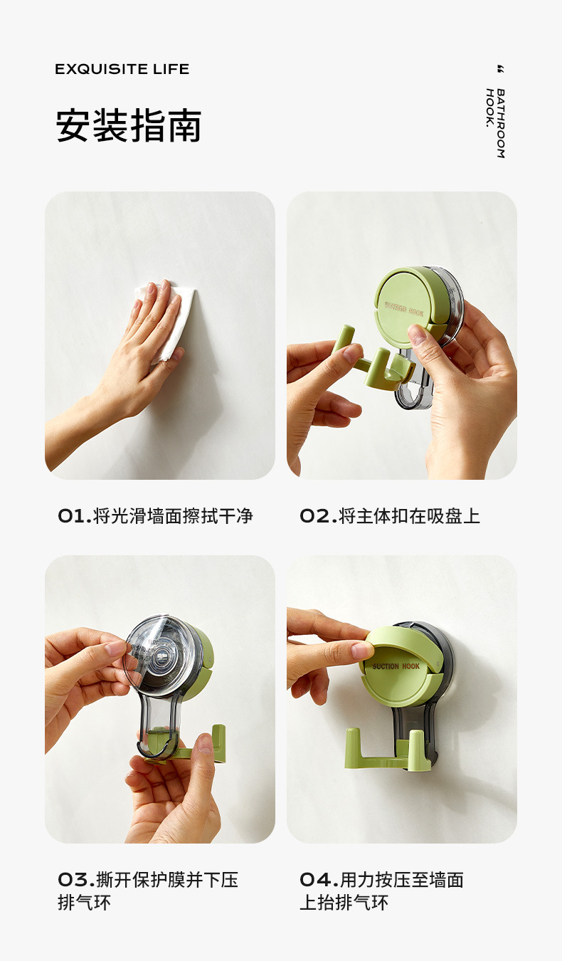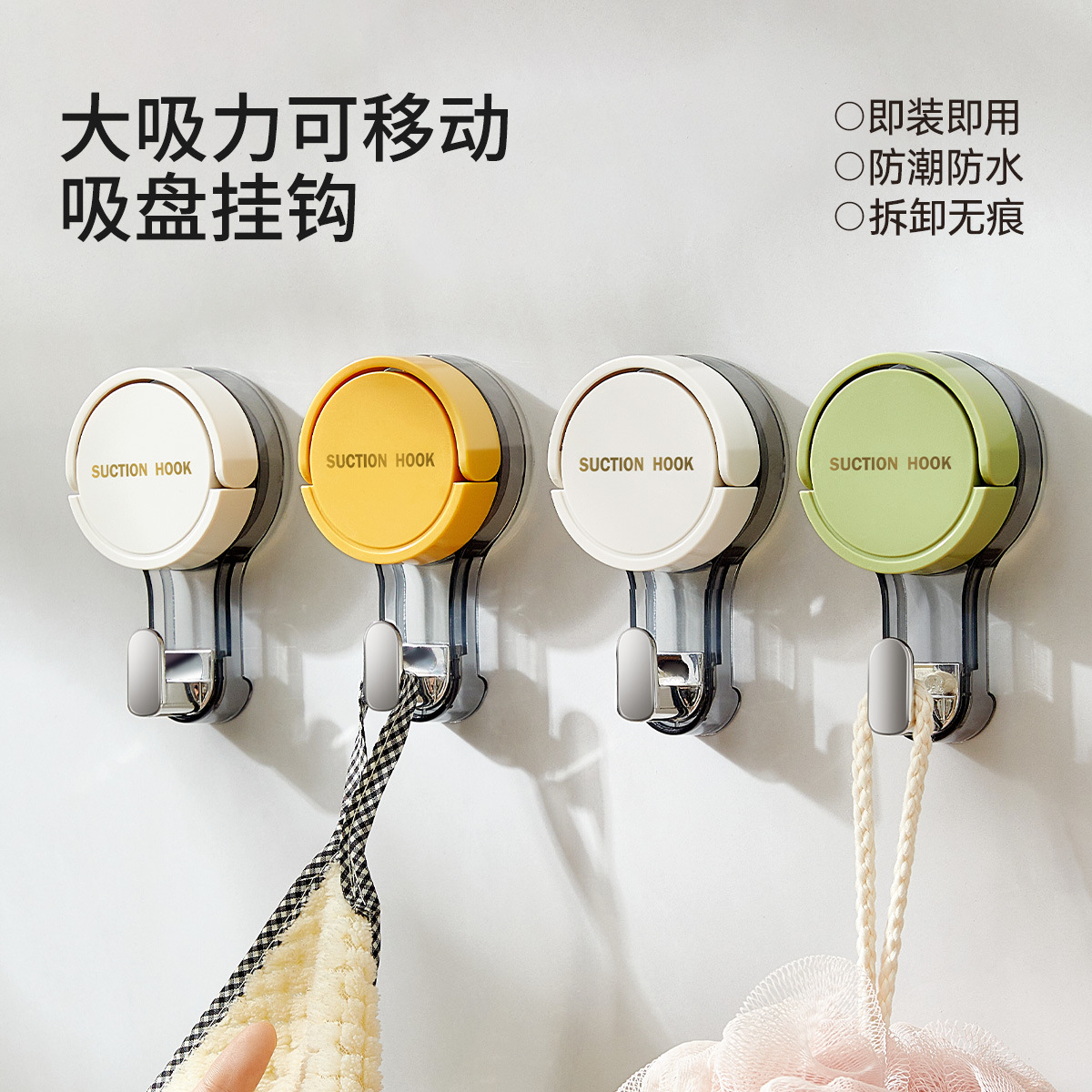 吸盘挂钩真空强力无痕收纳免打孔粘钩家用浴室厨房门后卫生间吊钩