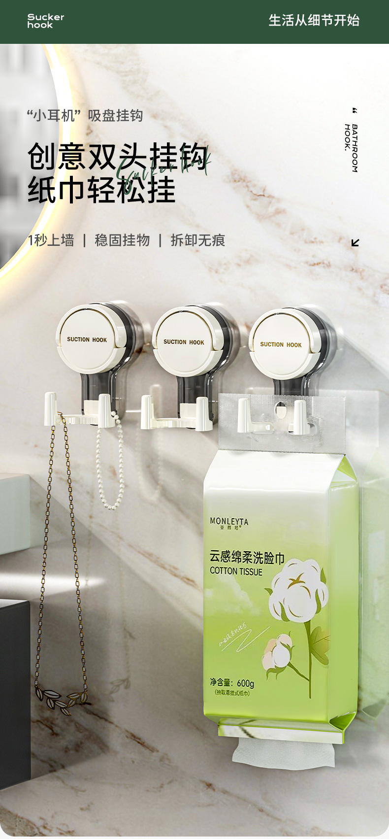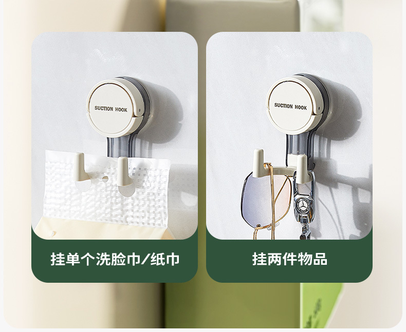 吸盘双挂钩厕所纸巾悬挂式多功能抽纸强力粘钩免打孔厨房卫浴挂钩