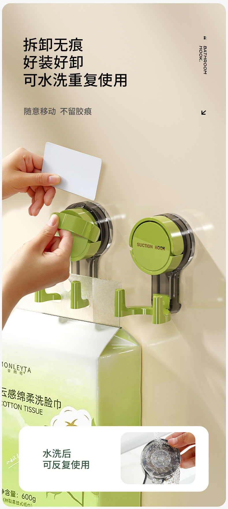 挂钩吸盘式强力真空无痕收纳免打孔家用浴室厨房门后卫生间粘钩