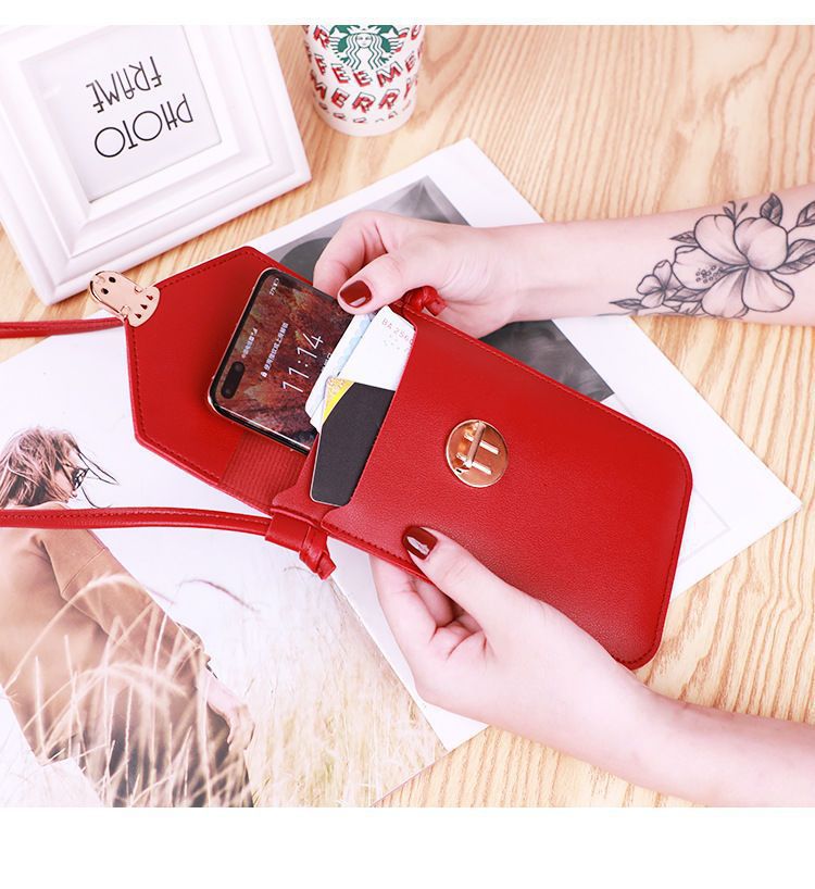 2025新款女式潮锁扣斜挎pu皮触屏手机钱包女复古学生搭扣小钱夹