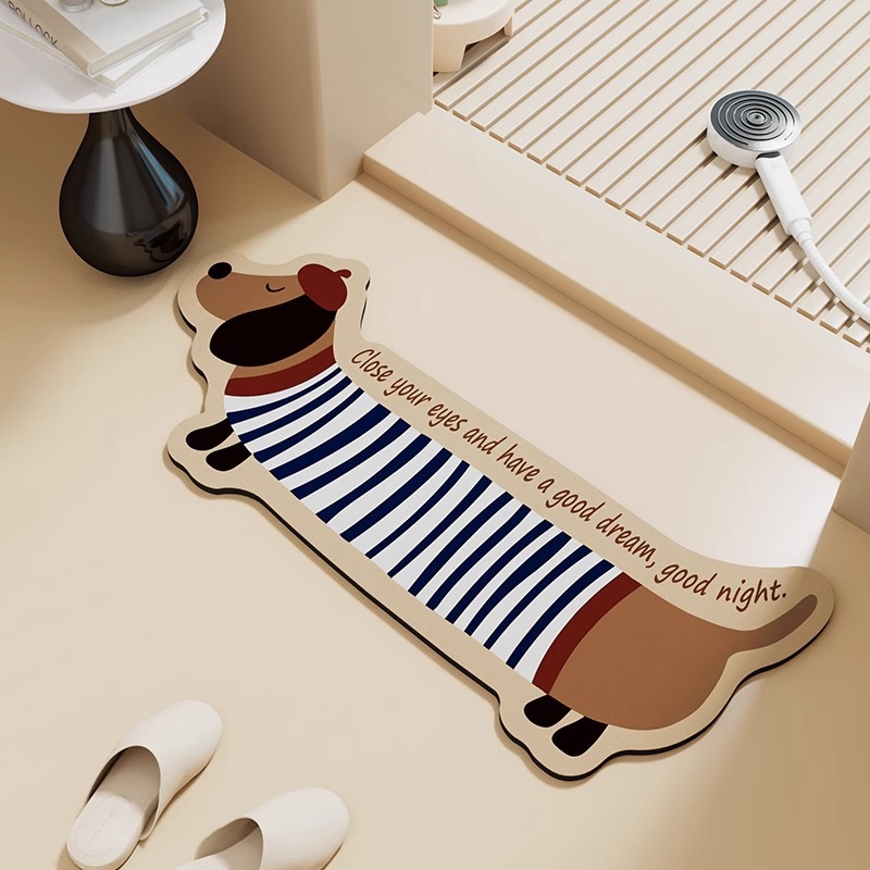 ダックスフント バスルームフロアマット 長くて汚れにくくお手入れが簡単な珪藻土フロアマット 浴室用吸水速乾滑り止めマット