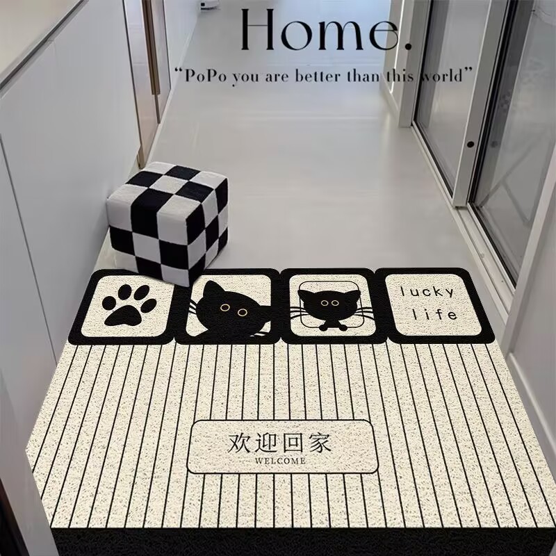 家に入るマットはシンプルで創造的な文字玄関の玄関の足マットは耐摩耗性滑り止めpvcシルクの床マットを裁断することができる