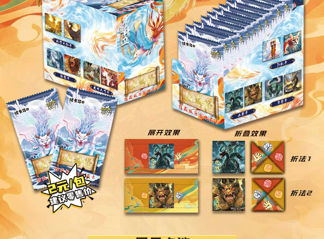 Shanhaijing コレクションカード 折りたたみ式ドラゴンカード プレイカード ブラインドボックス 学校のスーパーマーケットの売店に最適