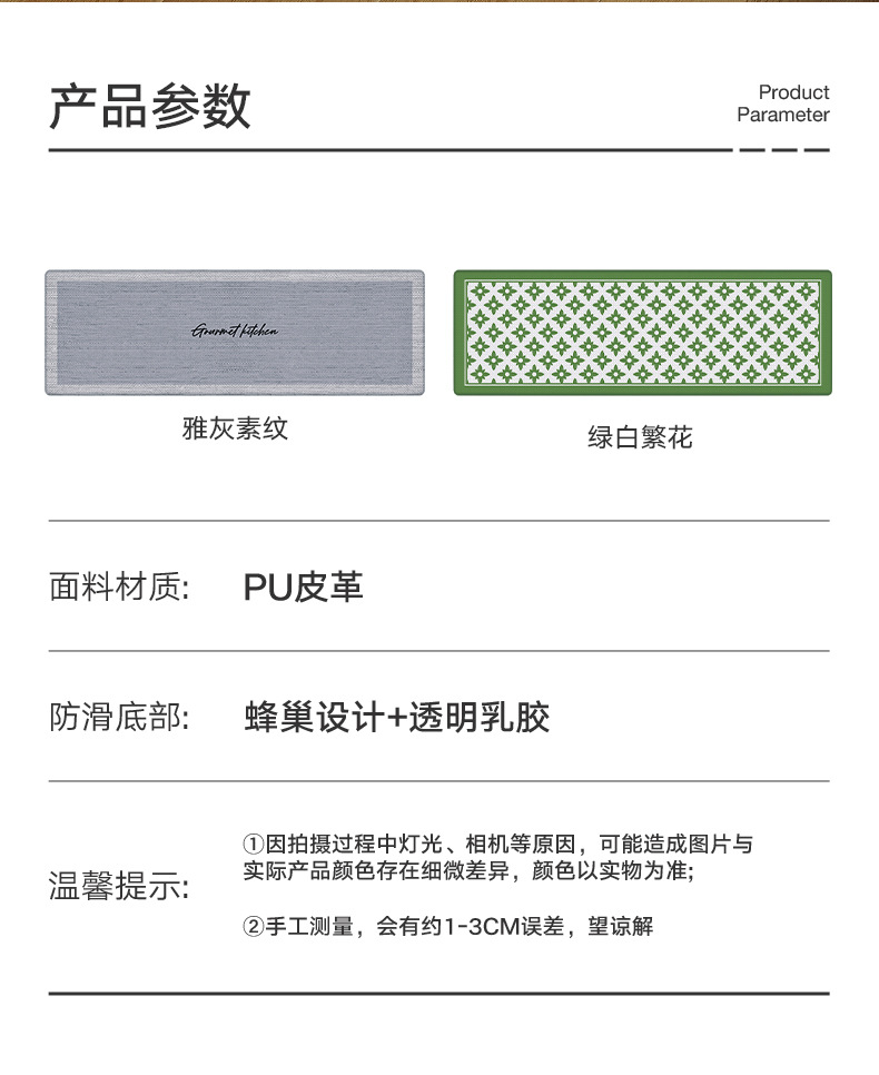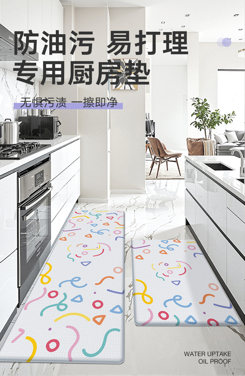 家用厨房抗疲劳脚垫小清新PU皮革防水防油污地垫双面防滑垫地毯