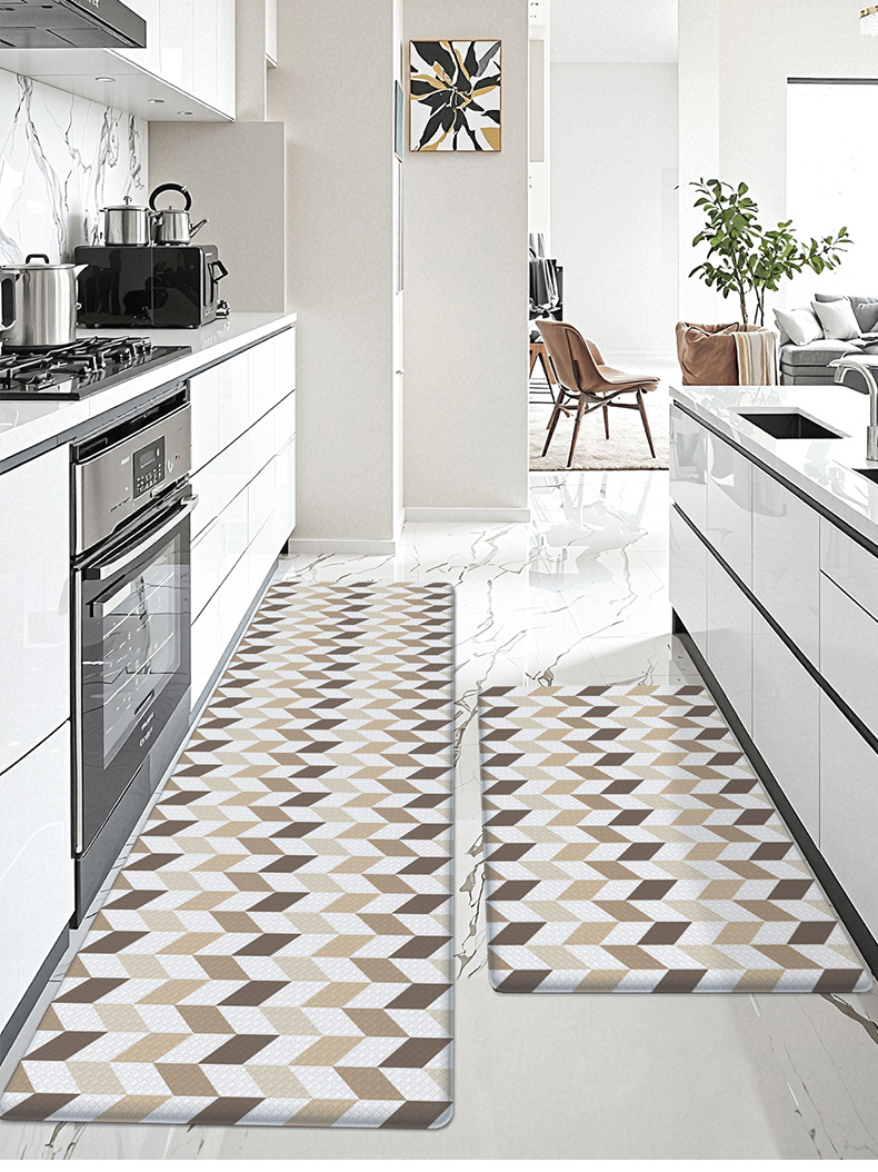 プリントPVCレザー製キッチンマット、防水・防油・滑り止め、玄関用疲労軽減フットマット、無地で拭き取り可能