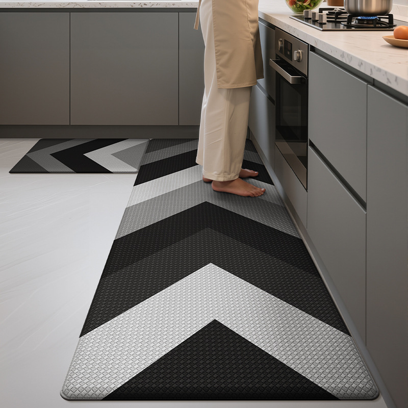 モダンでシンプルなキッチンフロアマットメーカー直販耐油防水カーペット抗疲労お手入れ簡単厚みのあるPVCフロアマット