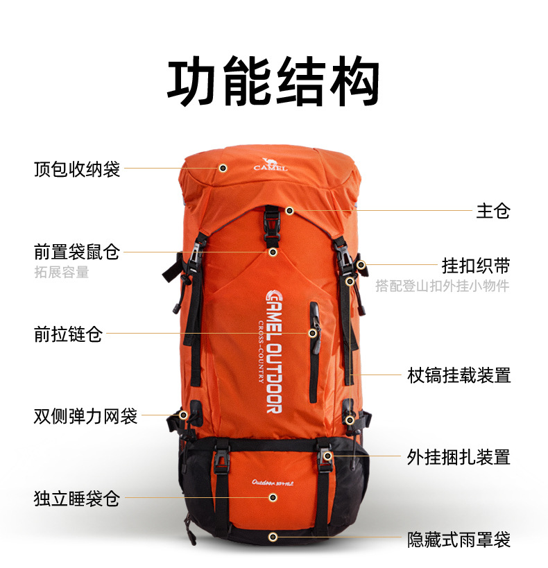 キャメルアウトドア登山バッグプロフェッショナルバックパック男性と女性のスポーツバックパック卸売大容量学生ハイキングバッグ