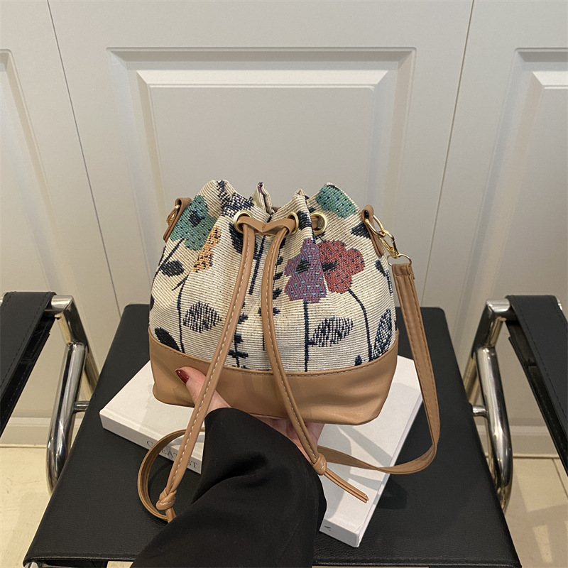 外国貿易卸売パーソナライズされたエスニックスタイルのクロスボディバッグ新しいファッションショルダーバッグカジュアル文学レトロ巾着バケットバッグ